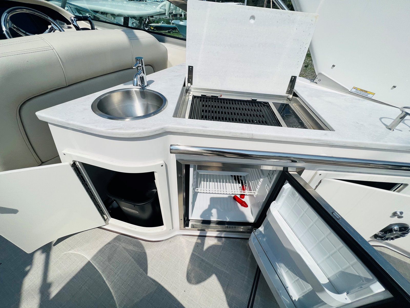 The Regal 33 XO is loaded with special features designed to enhance your boating experience. Navigation is effortless with the Garmin 1243xsv and B60 transducer, providing clear and accurate data for safe passage. The Garmin HD Closed Array Radar adds an extra layer of confidence, especially when venturing out in challenging conditions. For anglers, the two rod holders offer convenient storage and accessibility, while the swim platform cleats make docking and water activities a breeze.Underwater lighting in vibrant blue creates a captivating ambiance for evening cruises, transforming the water around your boat into a glowing spectacle. The companionway screen door ensures fresh air and comfort while keeping pests at bay. Relax in style on the foredeck sunpad, perfect for soaking up the sun or enjoying a quiet moment with a view. Fender clips—six in total—make securing your boat simple and efficient, while the anchor windlass with chain and rope allows for easy anchoring in your favorite spots.The stainless steel upgrade throughout the boat not only adds a touch of elegance but also ensures durability and resistance to the elements. Every feature is thoughtfully integrated to provide maximum enjoyment, safety, and convenience for you and your guests.