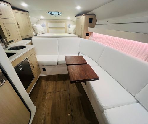 Powering the Regal 33 XO are two robust engines, delivering a combined 600 horsepower. This dynamic setup ensures exhilarating acceleration, smooth cruising, and reliable handling in a variety of water conditions. Whether you’re navigating coastal waters or exploring inland lakes, the 33 XO’s twin-engine configuration offers the perfect balance of speed and control. The advanced engineering behind Regal’s propulsion system means you can enjoy efficient fuel consumption and responsive maneuverability, making every journey both thrilling and economical.