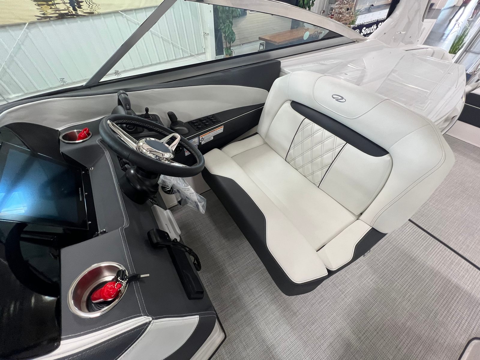 The 2026 Regal 3300 Bowrider is loaded with premium features designed to maximize comfort, convenience, and enjoyment. The Aft Cockpit Electric Sureshade for the hard top provides adjustable shade at the touch of a button, allowing you to relax in comfort no matter the weather. The anchor windlass with all-chain operation simplifies anchoring, giving you peace of mind when you want to stop and enjoy the scenery.Safety is a top priority, with an automatic fire extinguisher system offering added protection for you and your guests. The bow and cockpit covers keep your boat protected from the elements, while the bow walk-thru doors make moving between the bow and cockpit safe and easy. The cockpit refrigerator ensures your favorite refreshments are always within reach, and the cockpit seagrass mat adds a touch of luxury underfoot, enhancing the overall ambiance of the boat.