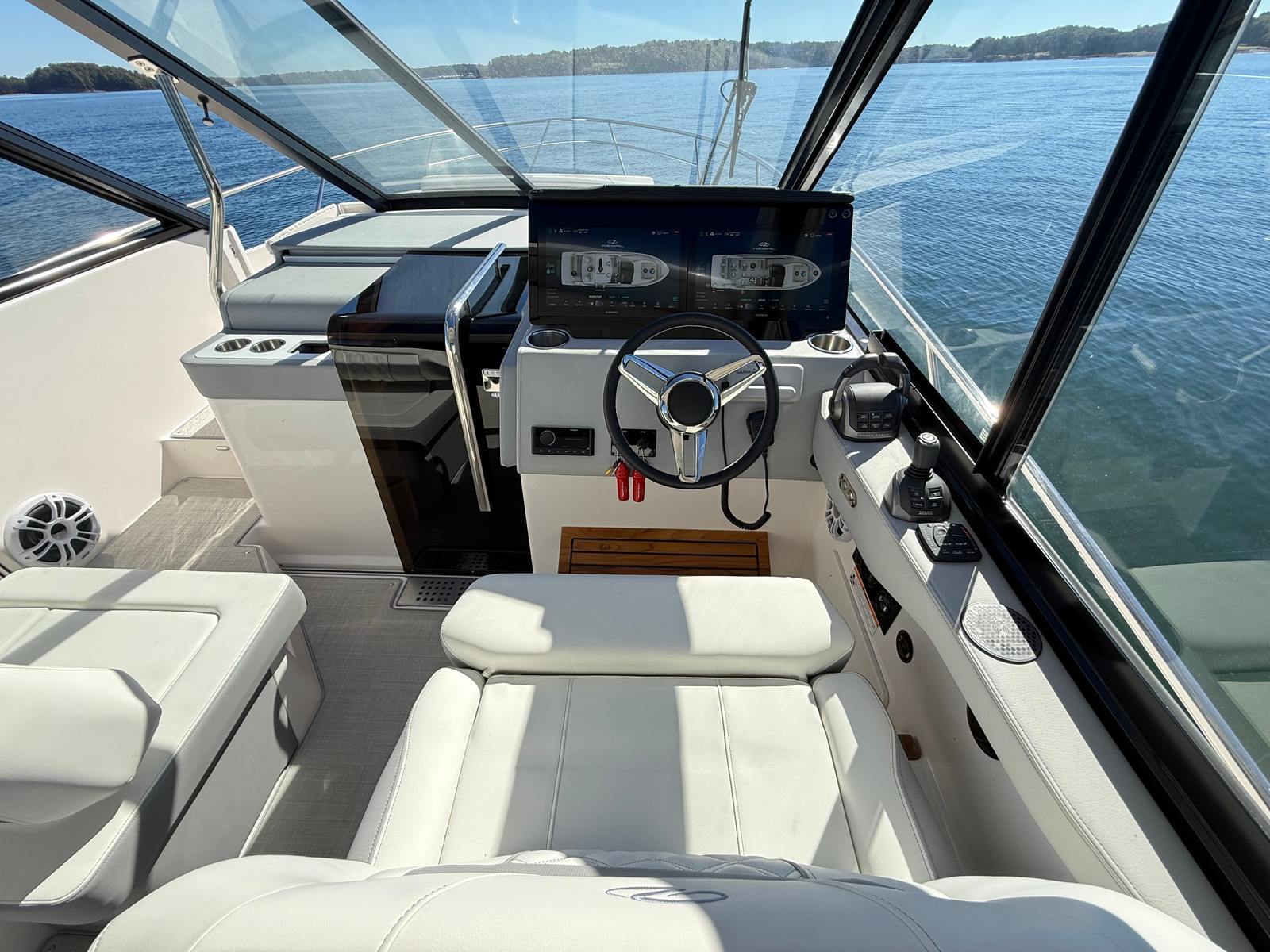 Step aboard the Regal 36 Grande Coupe and discover a world of premium features designed for comfort, convenience, and style. The cockpit is protected by an Aft Cockpit Canvas with a Cockpit IsinGlass Enclosure, allowing you to enjoy the outdoors while staying shielded from the elements. The manual Bow Sunshade System provides flexible shade options for relaxing on sunny days, while transom seat covers keep your seating areas looking fresh and inviting. Privacy is assured with a windshield privacy curtain, creating a secluded retreat whenever you desire. Every detail, from the hull color to the bottom paint, reflects Regal’s commitment to quality and sophistication.