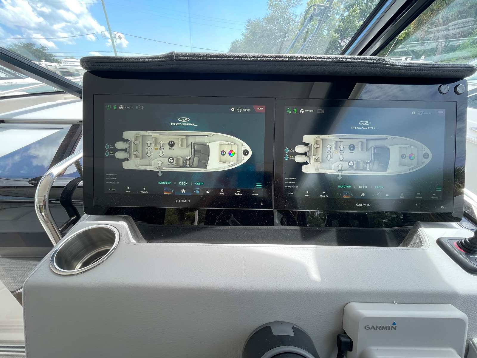 Step aboard the Regal 36 XO and immerse yourself in a world of luxury and innovation. The interior is adorned with a Titanium finish, complemented by a toasted oak salon floor that exudes warmth and sophistication. The yacht is equipped with digital switching, allowing you to control onboard systems with ease and precision. Enjoy your favorite music with the stereo satellite tuner and antenna, ensuring crystal-clear sound wherever your journey takes you. Set the perfect mood with RGBW lighting, which offers customizable color options to suit any occasion.For those who value advanced navigation and safety, the Garmin HD closed array radar provides state-of-the-art situational awareness, helping you navigate with confidence in any conditions. The diesel generator (110V) ensures reliable power for all your onboard amenities, making extended stays on the water both comfortable and convenient. Every detail of the 36 XO is designed to enhance your boating experience, from the stylish exterior to the thoughtfully appointed interior spaces.