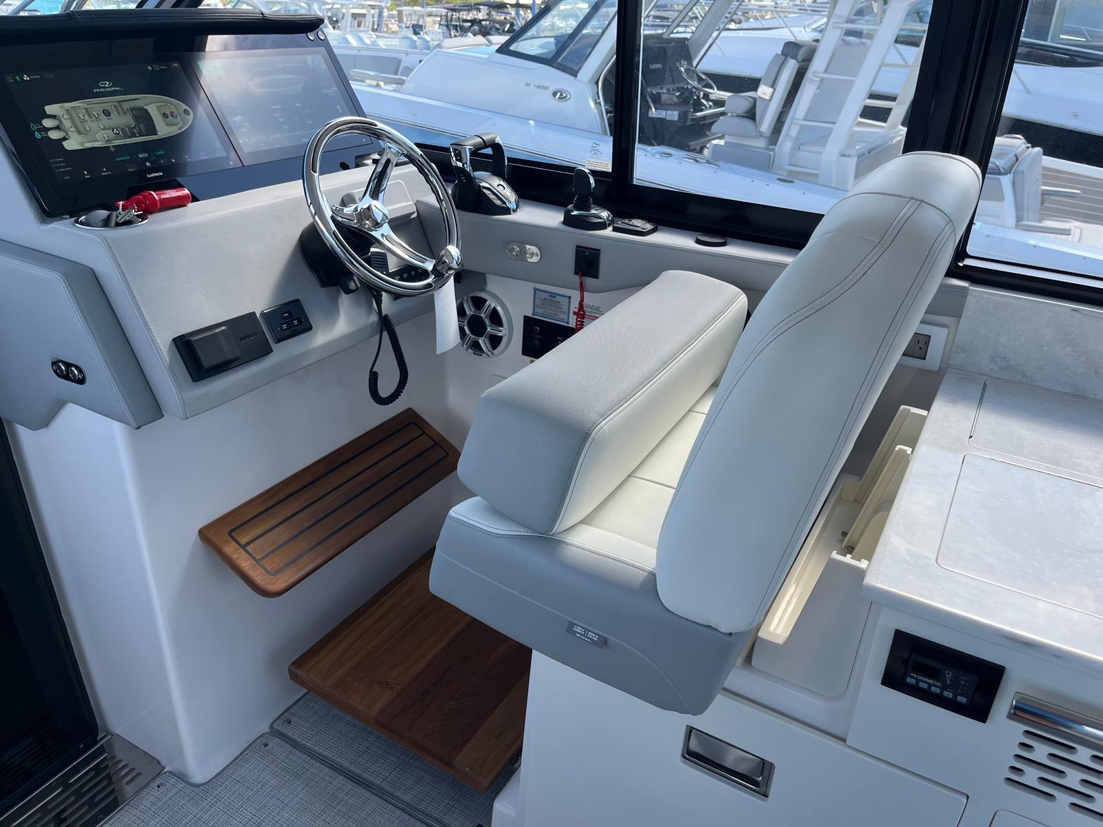 The 2026 Regal 36 XO is a yacht that commands attention with its impressive length of 37.25 feet. Crafted for those who appreciate both aesthetics and functionality, this vessel showcases Regal’s commitment to quality and innovation. The exterior is a visual masterpiece, featuring a hull color in Steel Gray, complemented by a Mediterranean Blue bootstripe and a Tahiti Beach White bottom. The yacht’s Titanium interior exudes sophistication, creating a welcoming and luxurious atmosphere for you and your guests. With its new condition, this yacht promises pristine quality and the latest advancements in marine design.