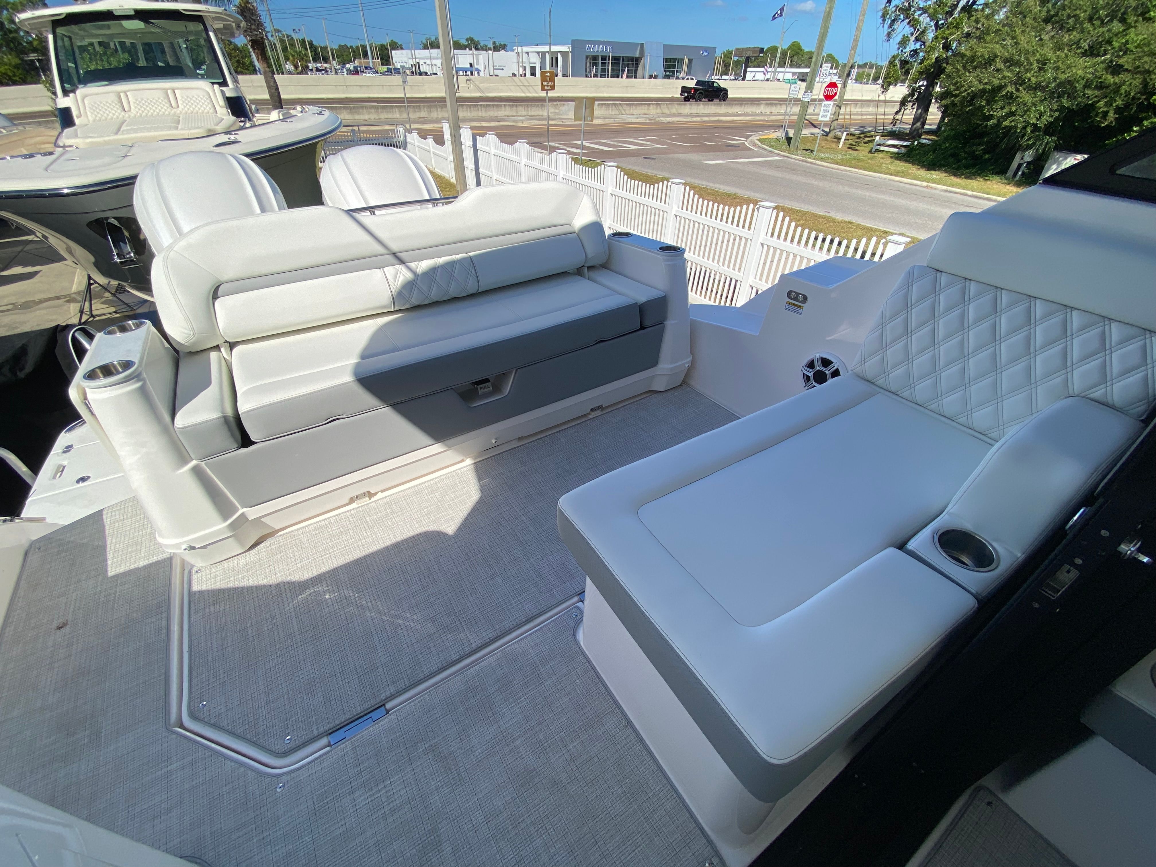 At the heart of the Regal 36 XO are twin Yamaha F450 engines, delivering a combined 900 horsepower for exhilarating performance and smooth cruising. Whether you are navigating coastal waters or embarking on longer journeys, these powerful engines provide the reliability and efficiency you need for worry-free boating. The advanced engineering of the Regal 36 XO ensures responsive handling, impressive acceleration, and a comfortable ride, making every trip a pleasure. With no bottom paint, the hull maintains optimal hydrodynamics, contributing to enhanced speed and fuel efficiency.