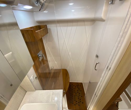 The Regal 36 XO is equipped with a range of special features designed to elevate your boating experience. The manual bow sunshade system offers flexible protection from the sun, allowing you to create the perfect environment for relaxation on the bow. Transom seat covers provide added comfort and protection for your seating areas, while the windshield privacy cover ensures discretion and shade when needed. The black canvas accents add a touch of elegance and durability, perfectly complementing the yacht's overall aesthetic. Every detail, from the color-coordinated hull to the thoughtfully designed interior, reflects Regal's commitment to quality and innovation.