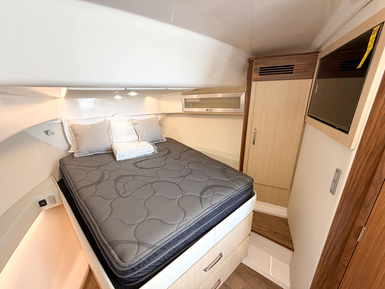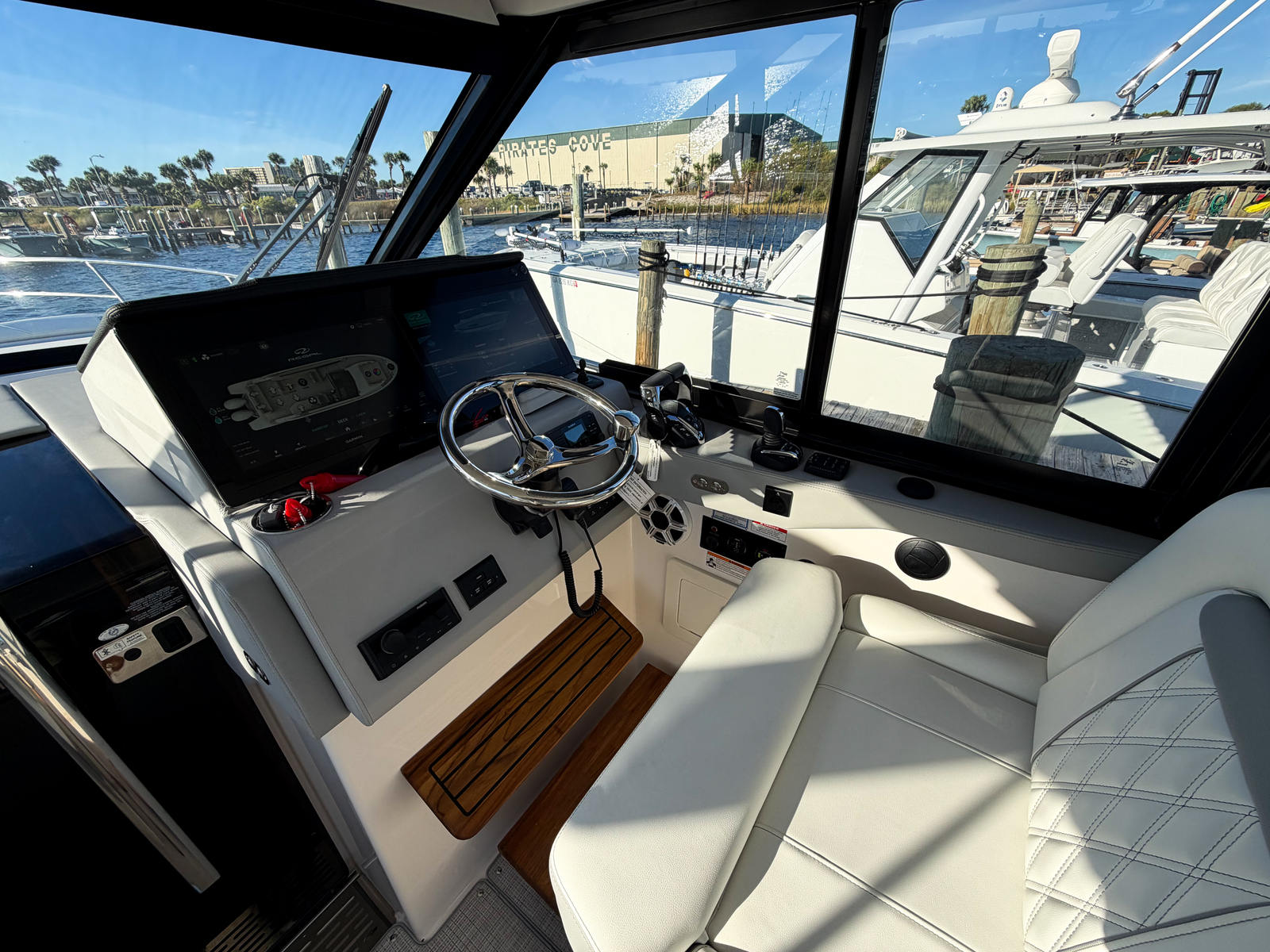 The Regal 36 XO is as practical as it is luxurious. The dual engines make maneuvering in marinas and tight spaces effortless, while the Fender Clips simplify the docking process, saving you time and hassle. The Aft Cockpit Canvas with Palm Beach Enclosure allows you to enjoy the outdoor spaces in a variety of weather conditions, extending your boating season and enhancing your comfort.The onboard Generator provides peace of mind, ensuring that all your electrical needs are met, whether you are anchored in a secluded cove or entertaining guests at the dock. The durable Cockpit Seagrass Mat is easy to clean and maintain, making it ideal for active boaters who want both style and practicality. The advanced Garmin navigation system helps you chart your course with confidence, while the Stereo Satellite Tuner keeps the atmosphere lively and fun.