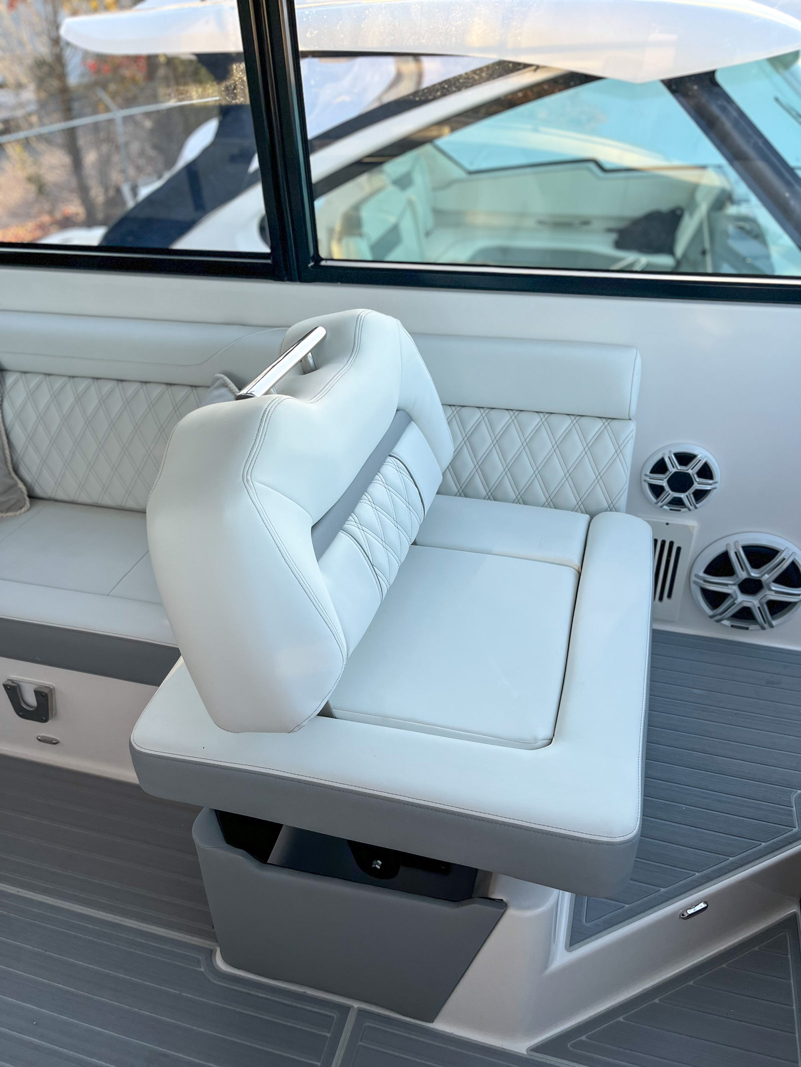 Step aboard the Regal 36 XO and discover a world of premium features designed for comfort and convenience. The yacht’s coastal package enhances its versatility, making it ideal for both short trips and extended journeys. The Mediterranean Blue canvas adds a touch of elegance, while the salon floor in toasted oak creates a warm, inviting atmosphere. Strato Wind countertops provide a modern aesthetic and durable workspace for onboard entertaining.Enjoy the convenience of the manual bow sunshade system, offering protection from the sun while you relax on deck. The titanium anchor windlass with rope and chain ensures secure anchoring, while the cockpit refrigerator keeps your refreshments chilled and ready. Stay connected and safe with the Garmin VHF radio, a vital tool for communication on the water.