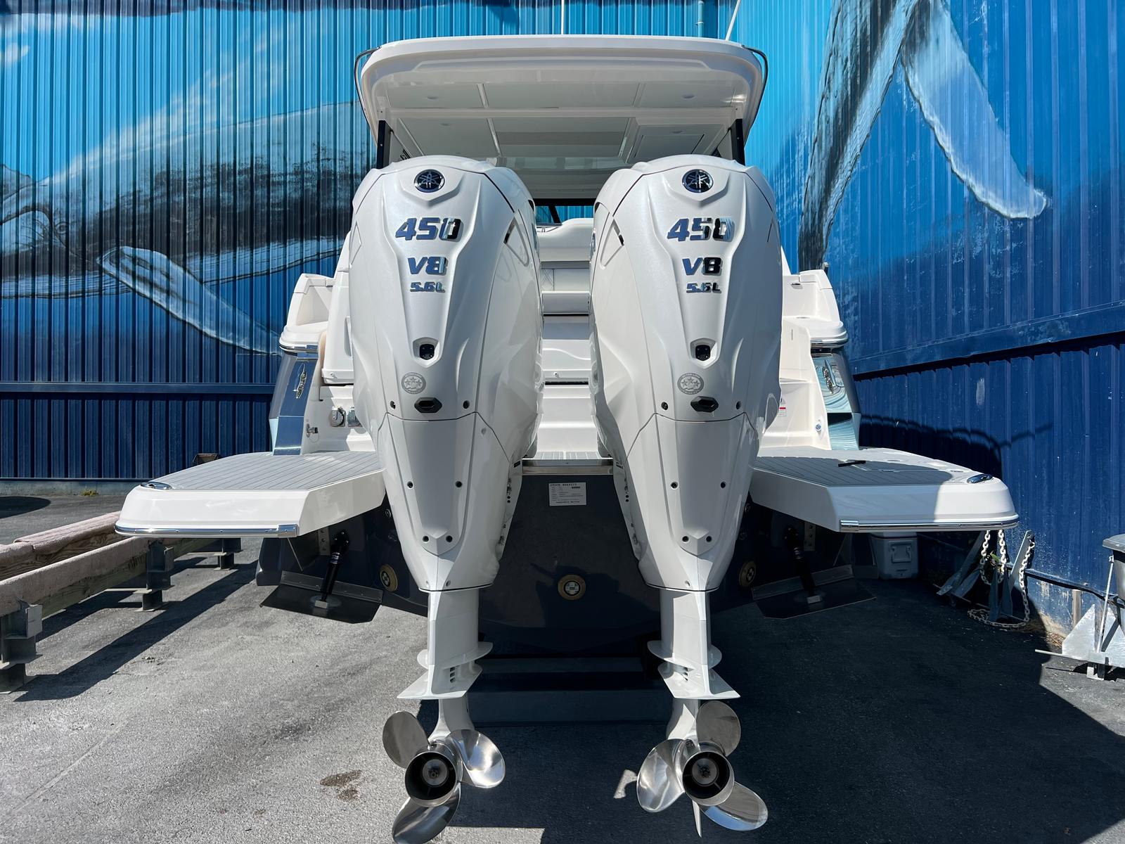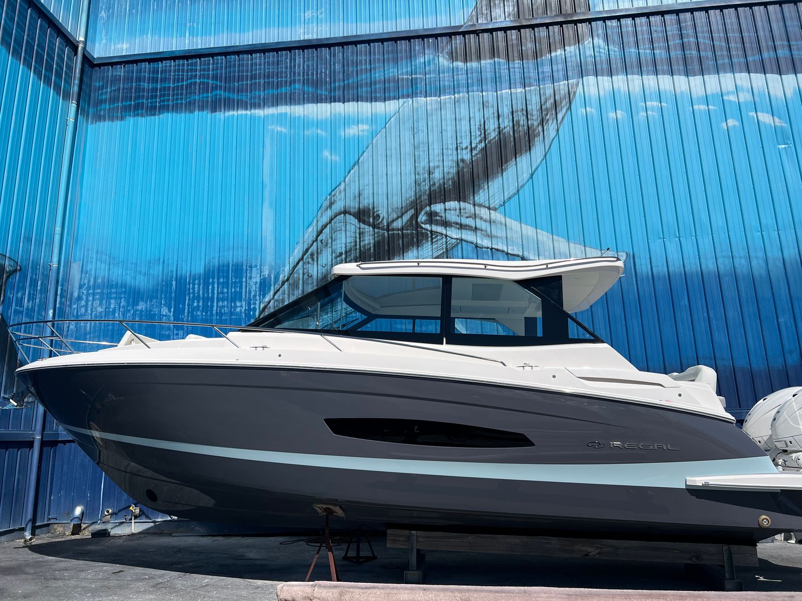 In summary, the 2026 Regal 36 XO is a standout yacht boat for sale that combines cutting-edge performance, luxurious comfort, and striking design. With its twin Yamaha F450UCA2 engines delivering 900 horsepower, graphite hull and bottom, Belle Isle Blue bootstripe, Titanium interior, manual bow sunshade system, Makrolon salon enclosure, and black canvas transom seat covers, this yacht is designed to impress. Its new condition and thoughtful features make it an exceptional choice for anyone seeking a Regal boat for sale that offers both excitement and relaxation on the water. Do not miss the opportunity to make this extraordinary yacht your own—contact the dealer today to learn more and schedule a viewing.