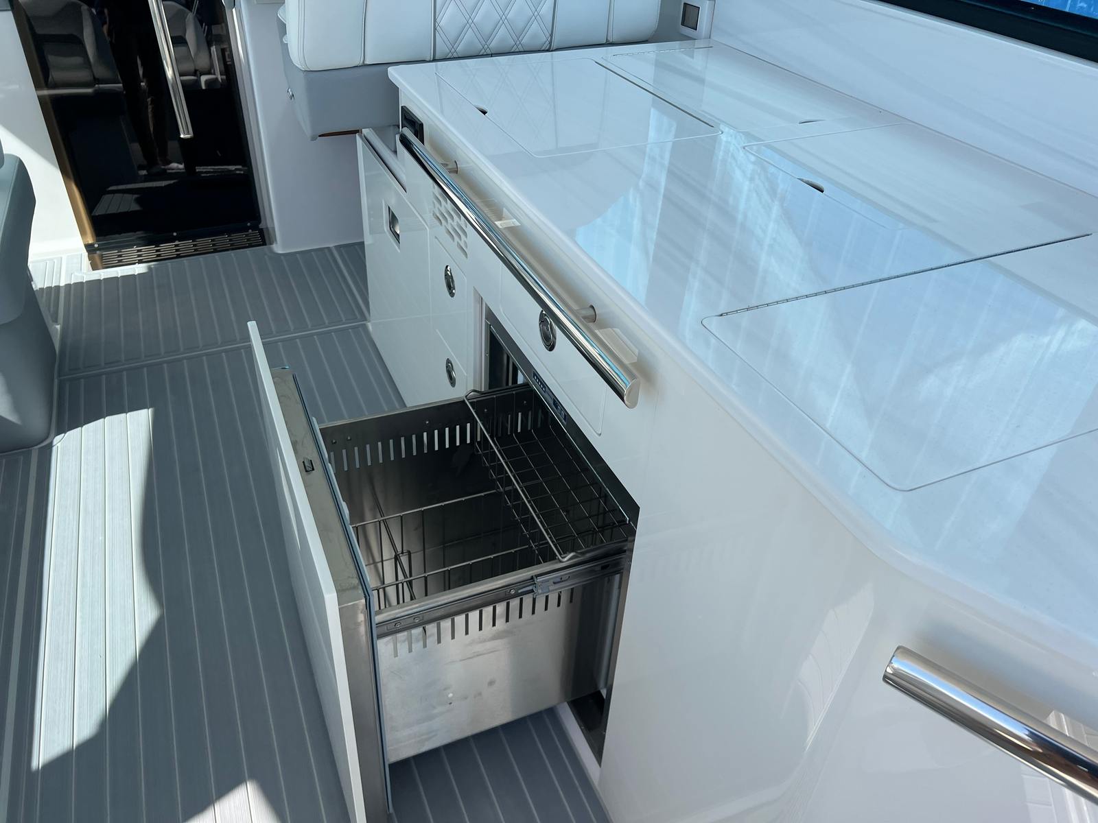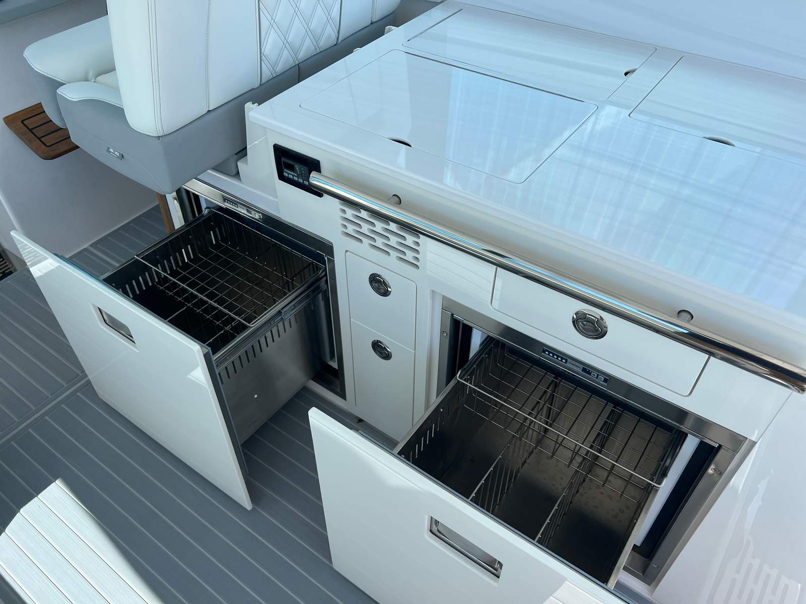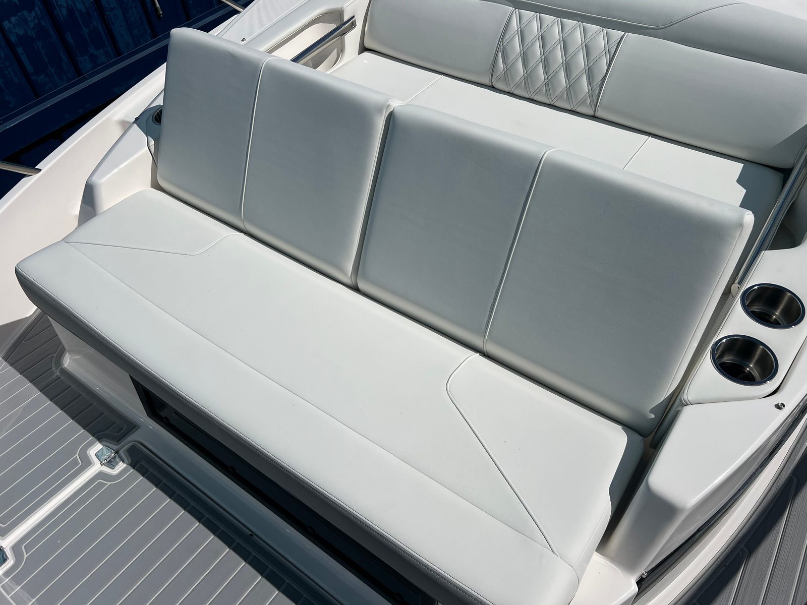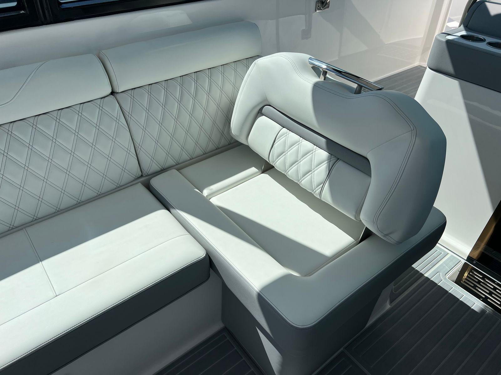 At the heart of the Regal 36 XO are twin Yamaha F450UCA2 engines, delivering a combined 900 horsepower. This powerful setup ensures exhilarating performance, whether you are cruising along the coastline or making a quick dash to your favorite destination. The advanced Yamaha engines are renowned for their reliability, smooth operation, and impressive fuel efficiency, allowing you to enjoy extended journeys with confidence. The 36 XO’s responsive handling and agile maneuverability make it a joy to captain, providing a thrilling yet controlled experience on the water.