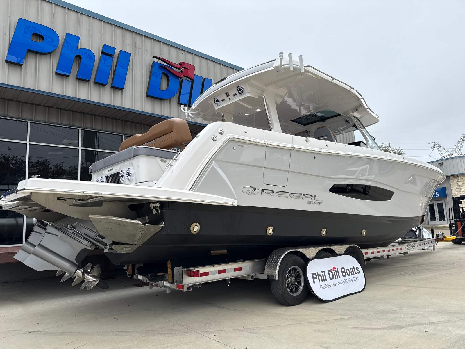 The 2026 Regal 38 Surf Bowrider is a remarkable combination of style, performance, and innovation. With its striking Steel Gray hull, luxurious Saddle Brown interior, twin Volvo V8 engines, and advanced joystick control, this new bowrider boat for sale offers everything you need for unforgettable days on the water. The PowerShade feature and thoughtful design details ensure comfort and convenience, while the spacious layout provides endless opportunities for fun and relaxation. Don’t miss your chance to own this exceptional Regal boat for sale – contact the dealer today to learn more and start your next adventure on the water!