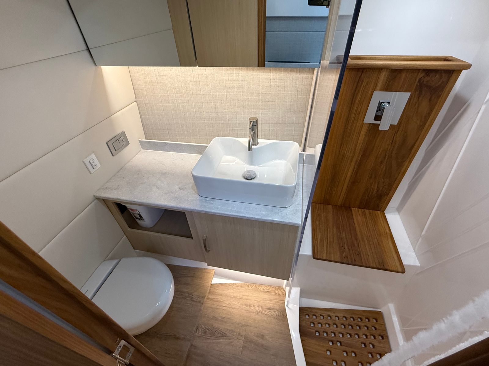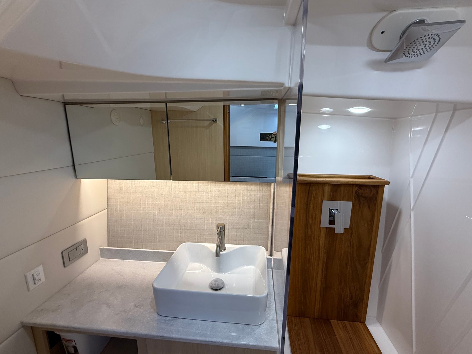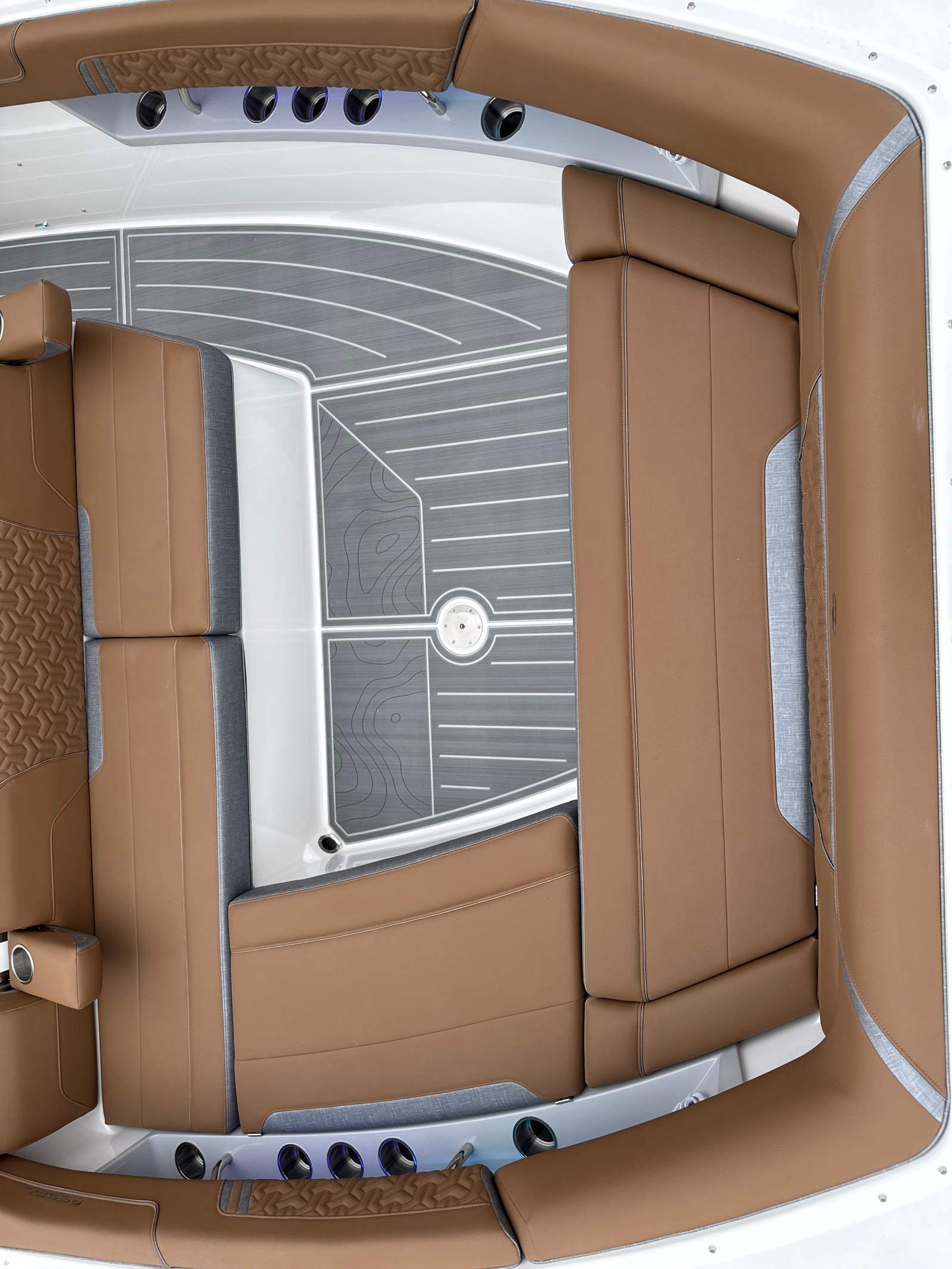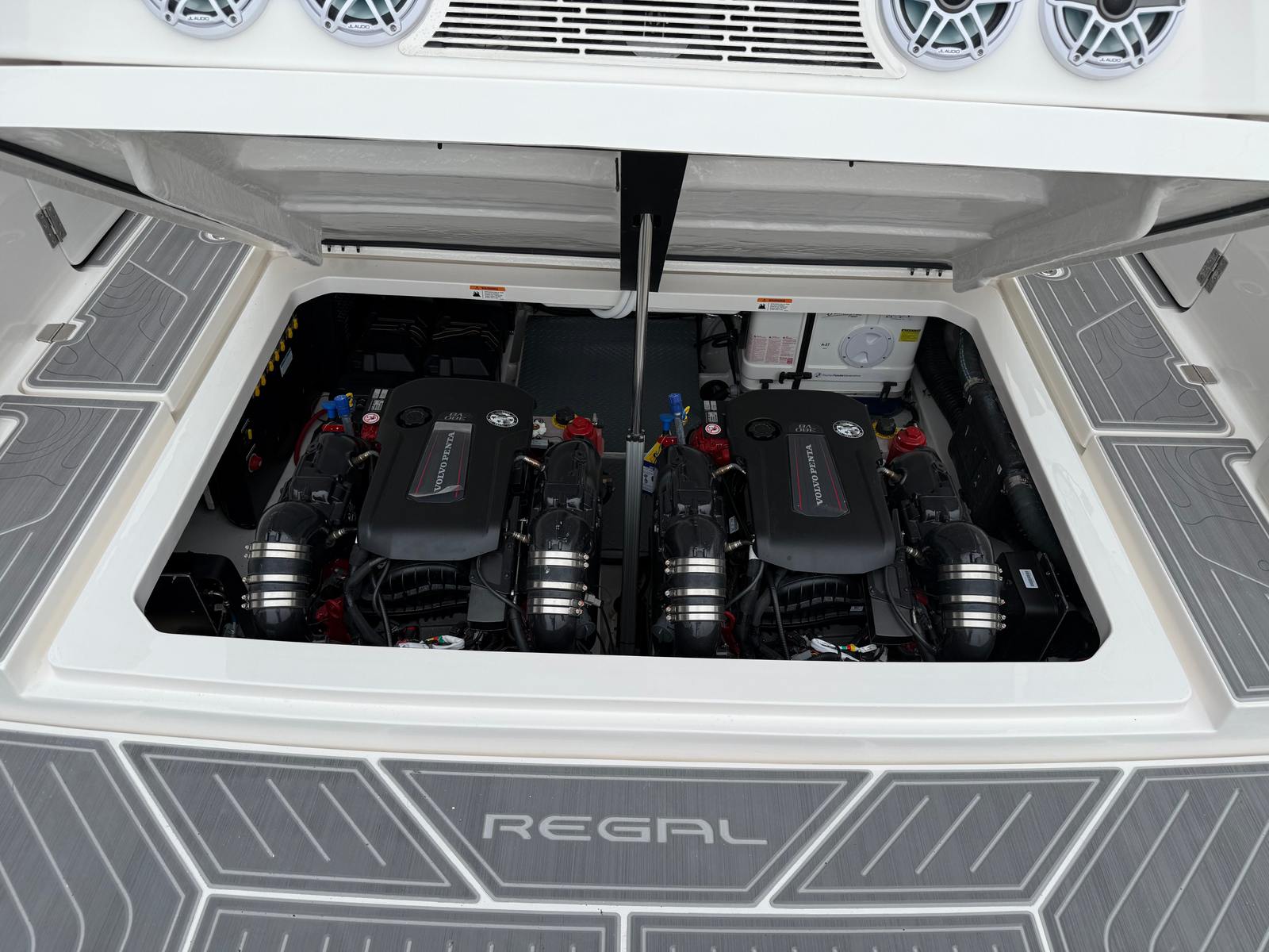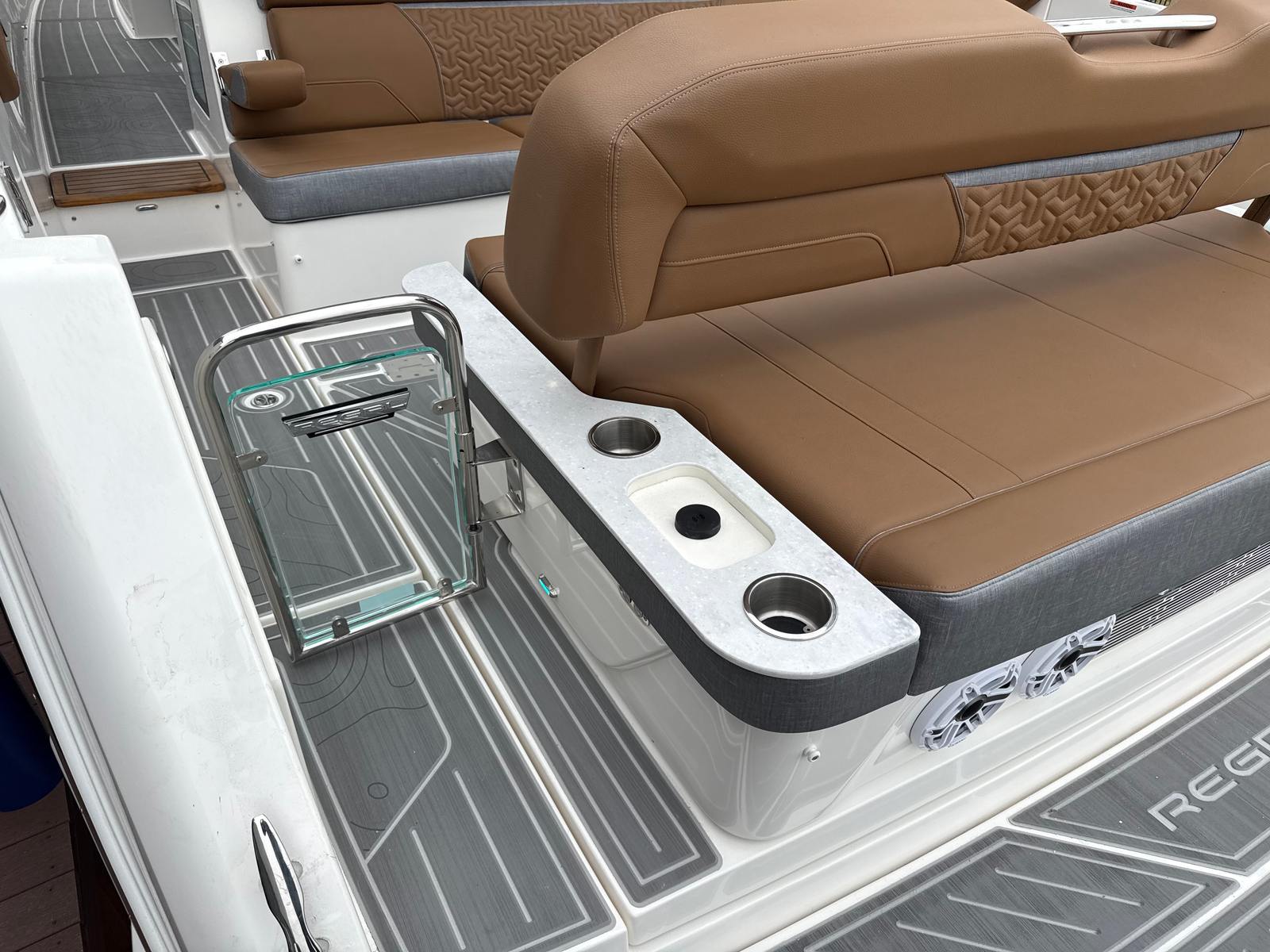 Under the hood, the Regal 38 Surf is powered by twin Volvo V8 380 FWD EVC2 DP CAT engines, delivering a combined 760 horsepower. This impressive powertrain ensures exhilarating acceleration, smooth cruising, and responsive handling, making every outing a thrill. The advanced joystick control system provides effortless maneuverability, allowing you to dock and navigate tight spaces with confidence and precision. Whether you’re carving through waves or enjoying a leisurely cruise, the performance of this bowrider is second to none.