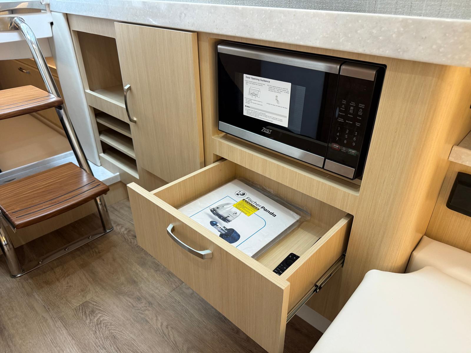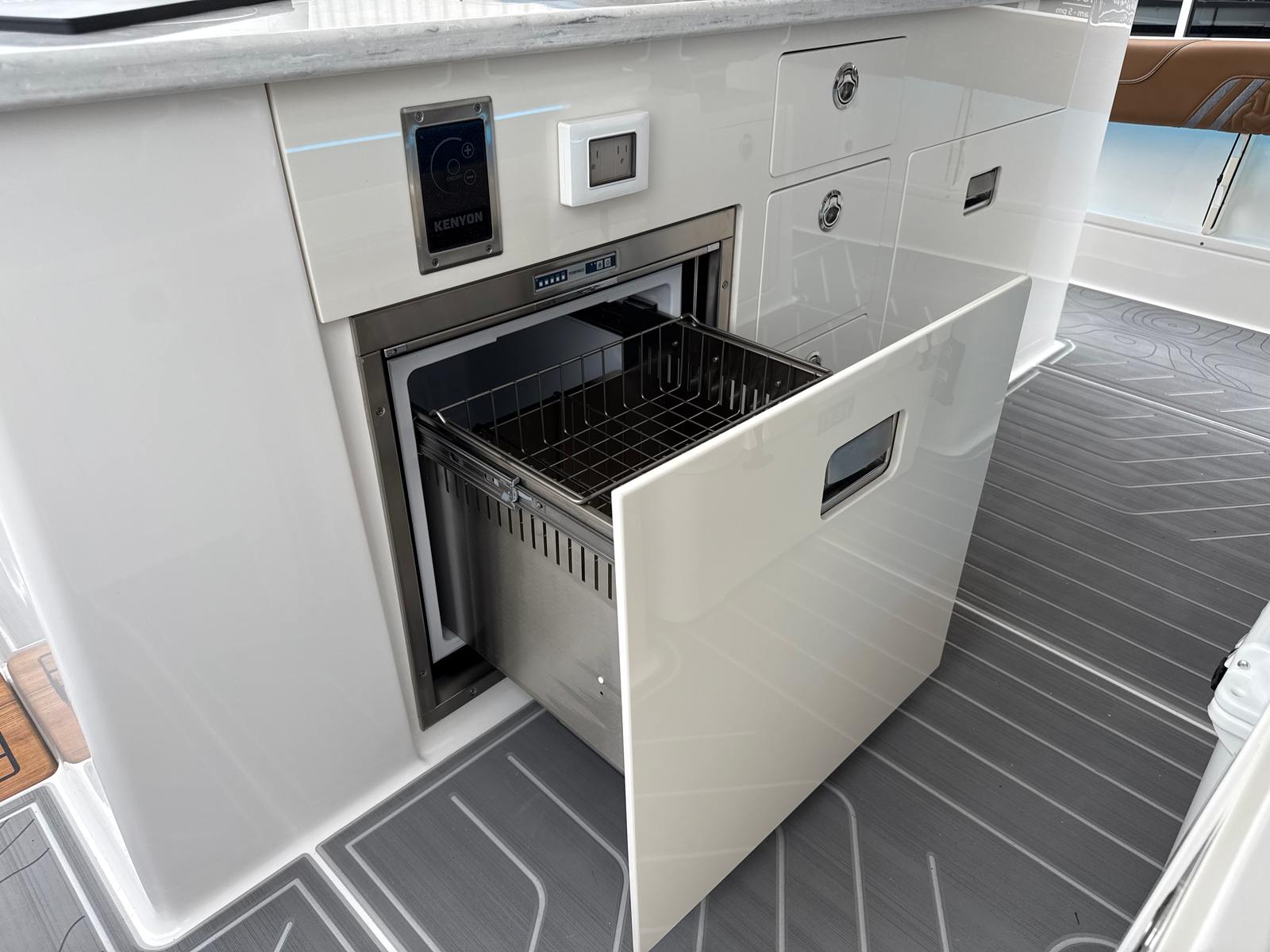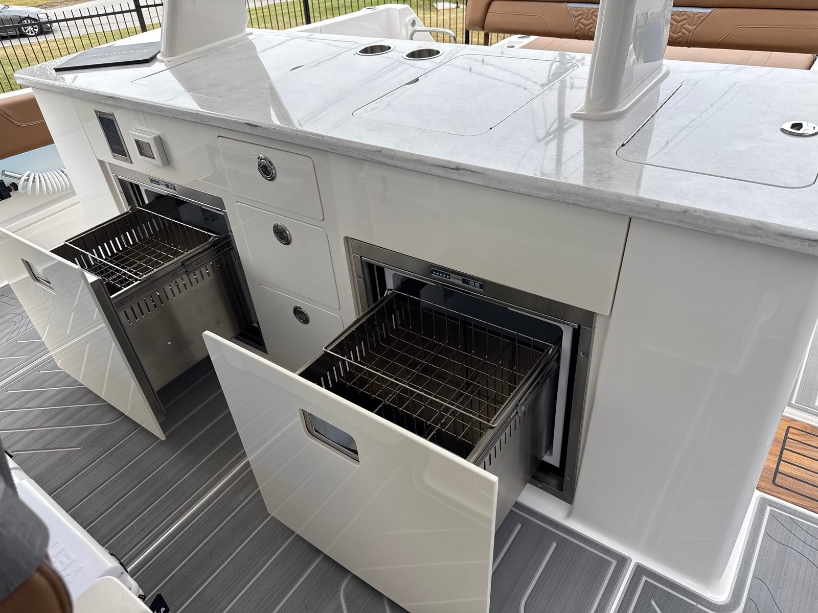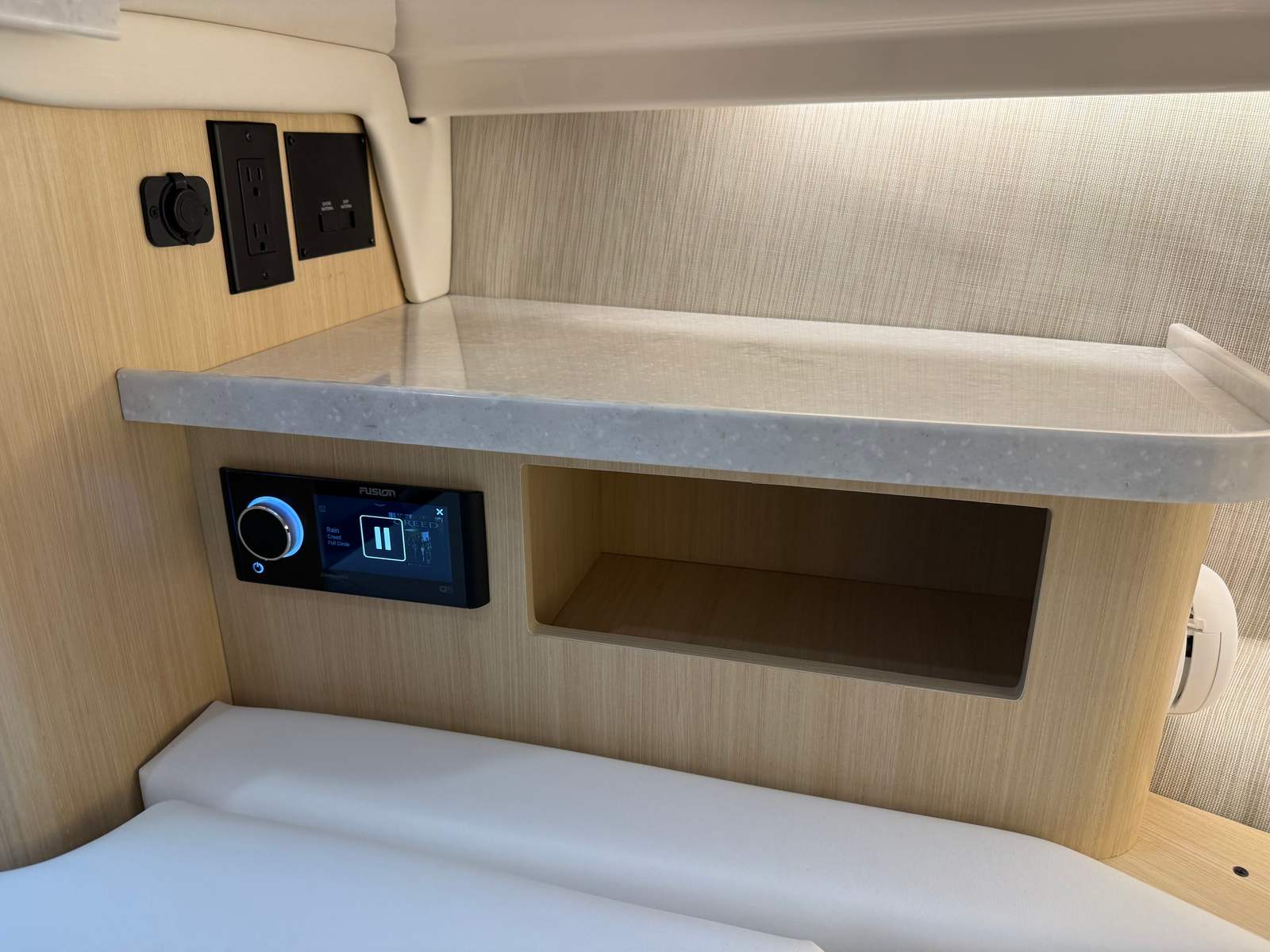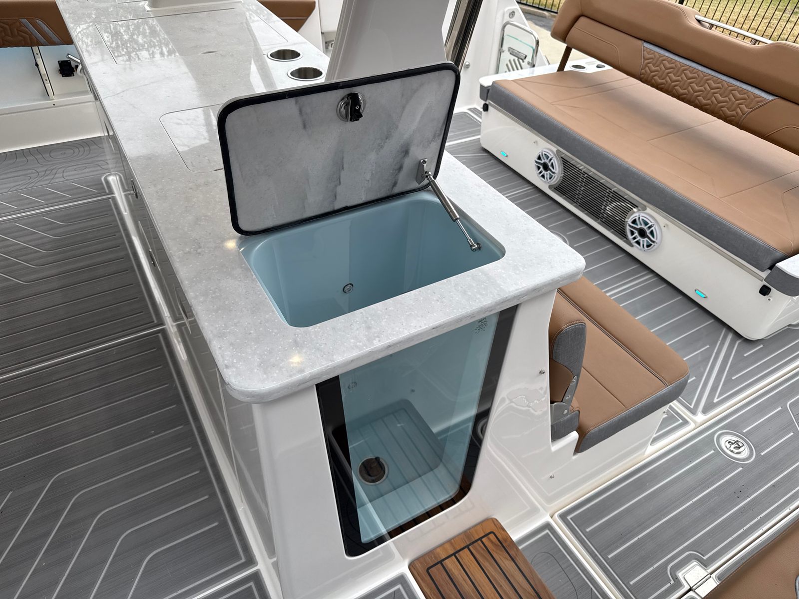 The Regal 38 Surf is designed with practicality in mind, making ownership as enjoyable as it is exciting. The intuitive joystick control system simplifies docking and maneuvering, reducing stress and making every trip more enjoyable. The ample storage options throughout the boat ensure that all your gear, water toys, and essentials are easily accessible and neatly stowed. The PowerShade feature provides adjustable sun protection, allowing you to stay cool and comfortable during long days on the water. The durable bottom paint and high-quality materials ensure that your investment remains protected and looking great for years to come.