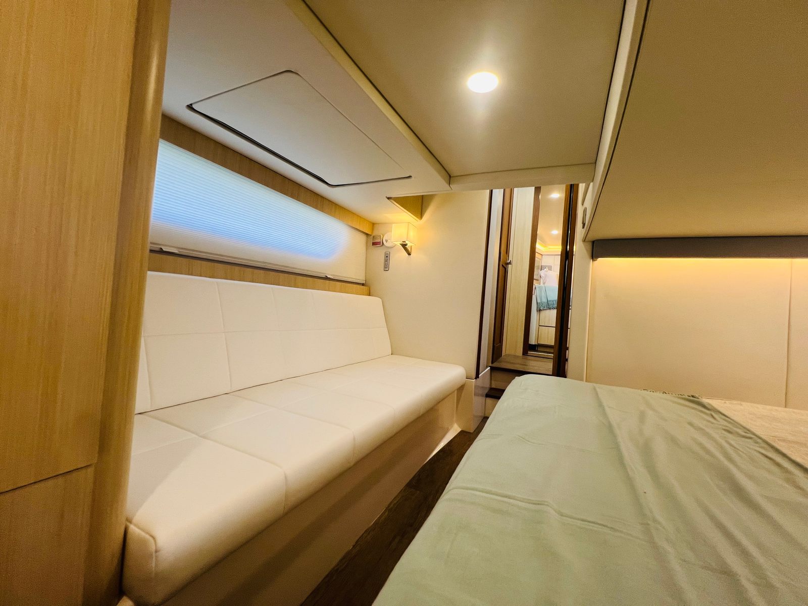 The Regal 42 XO is as practical as it is luxurious. Its spacious layout offers plenty of room for storage, making it easy to stow gear, supplies, and personal items for longer journeys. The yacht’s length and design facilitate easy docking, allowing you to maneuver in marinas and harbors with confidence. Fuel efficiency is enhanced by the automatic trim tabs, which help optimize performance and reduce consumption. The generator provides reliable power for all your electrical needs, while the durable canvas and seat cover protect your investment from the elements. Whether you are planning a quick escape or an extended cruise, the Regal 42 XO makes ownership effortless and enjoyable.