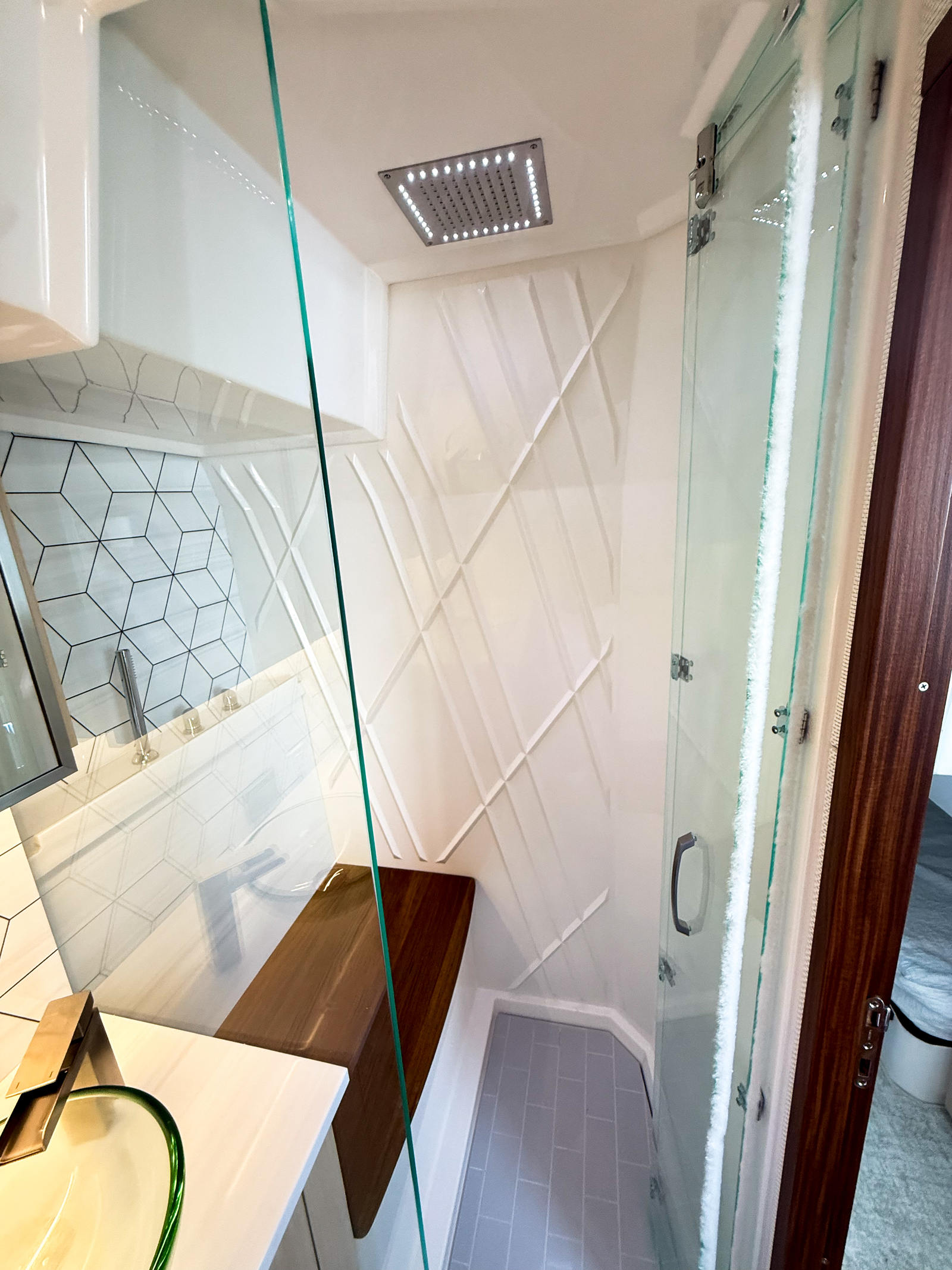 At the heart of the 2025 Regal 43 SAV is a powerhouse of performance. Equipped with twin Mercury 600XXL Verado engines, this yacht delivers a combined 1200 horsepower, ensuring thrilling acceleration and smooth cruising at any speed. The advanced engineering behind these engines provides not only impressive speed but also remarkable fuel efficiency and reliability. Whether you are navigating coastal waters or exploring offshore destinations, the Regal 43 SAV offers a responsive and exhilarating ride. The precision handling and robust powertrain make this yacht a joy to captain, giving you the confidence to tackle any adventure on the water.
