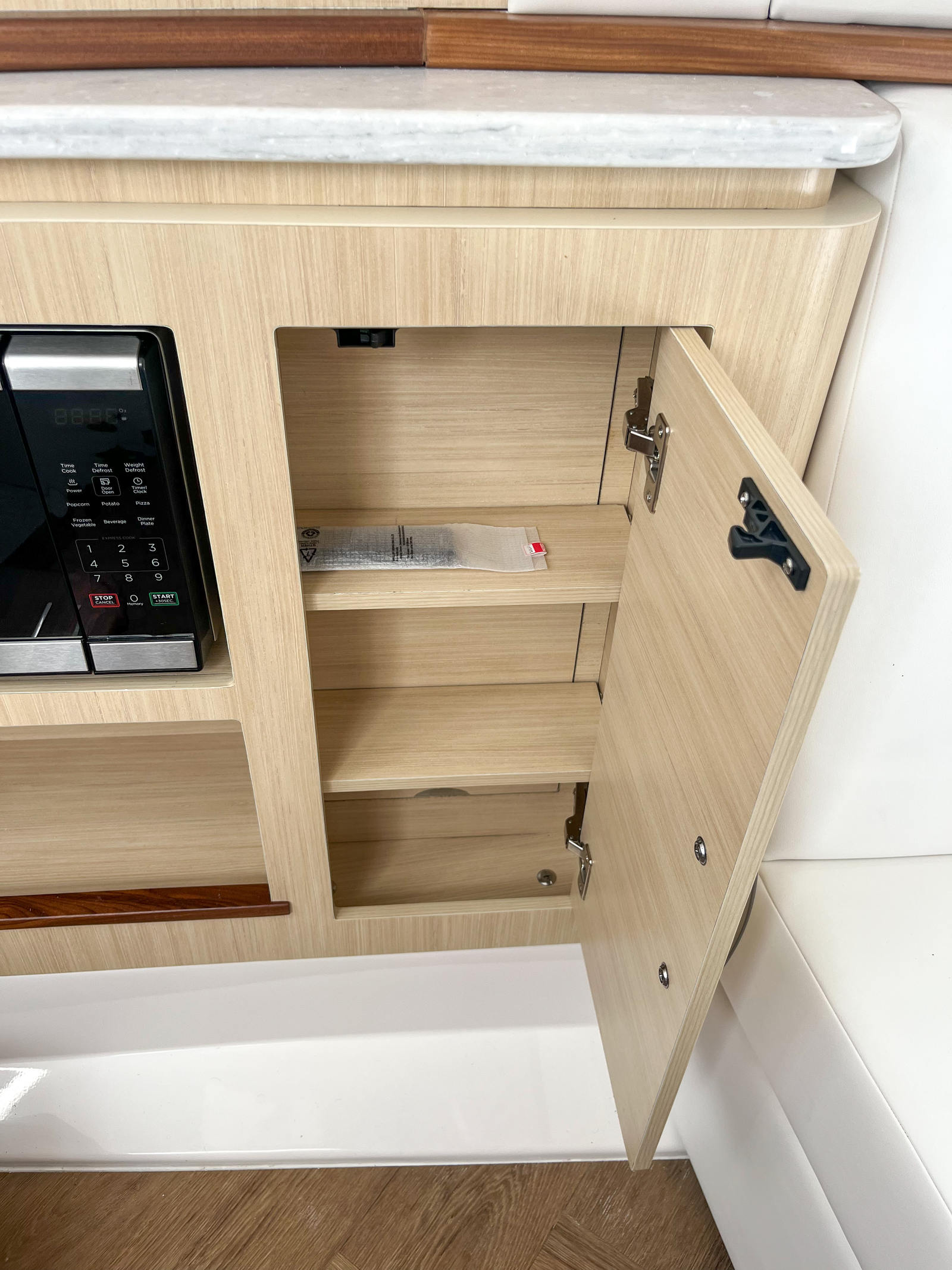 The Regal 43 SAV is as practical as it is luxurious. The ample storage options throughout the yacht make it easy to stow gear, supplies, and personal items, keeping the living spaces uncluttered and organized. Docking is simplified by the yacht’s responsive handling and advanced controls, allowing you to maneuver with ease in tight marinas or busy harbors. Fuel efficiency is enhanced by the yacht’s modern engine design, allowing you to spend more time on the water and less time at the fuel dock. The integrated refrigerator and convenient restroom facilities make it possible to enjoy longer excursions without sacrificing comfort or convenience.