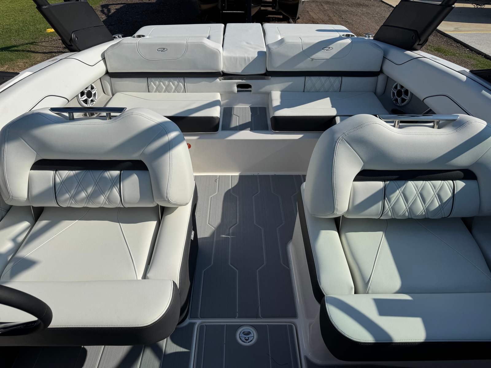At the heart of the Regal LS2 Surf is a powerful Volvo V8 300 FWD EVC2 DP CAT engine, delivering an impressive 300 horsepower. This advanced propulsion system ensures exhilarating acceleration, smooth handling, and precise control, making it ideal for both high-speed runs and leisurely cruises. The forward drive technology enhances maneuverability and creates the perfect wake for surfing and other water sports, while the dual propeller design maximizes efficiency and responsiveness. Whether you are towing a wakeboarder or simply enjoying a spirited ride, the LS2 Surf’s performance capabilities set it apart from other bowrider boats for sale.