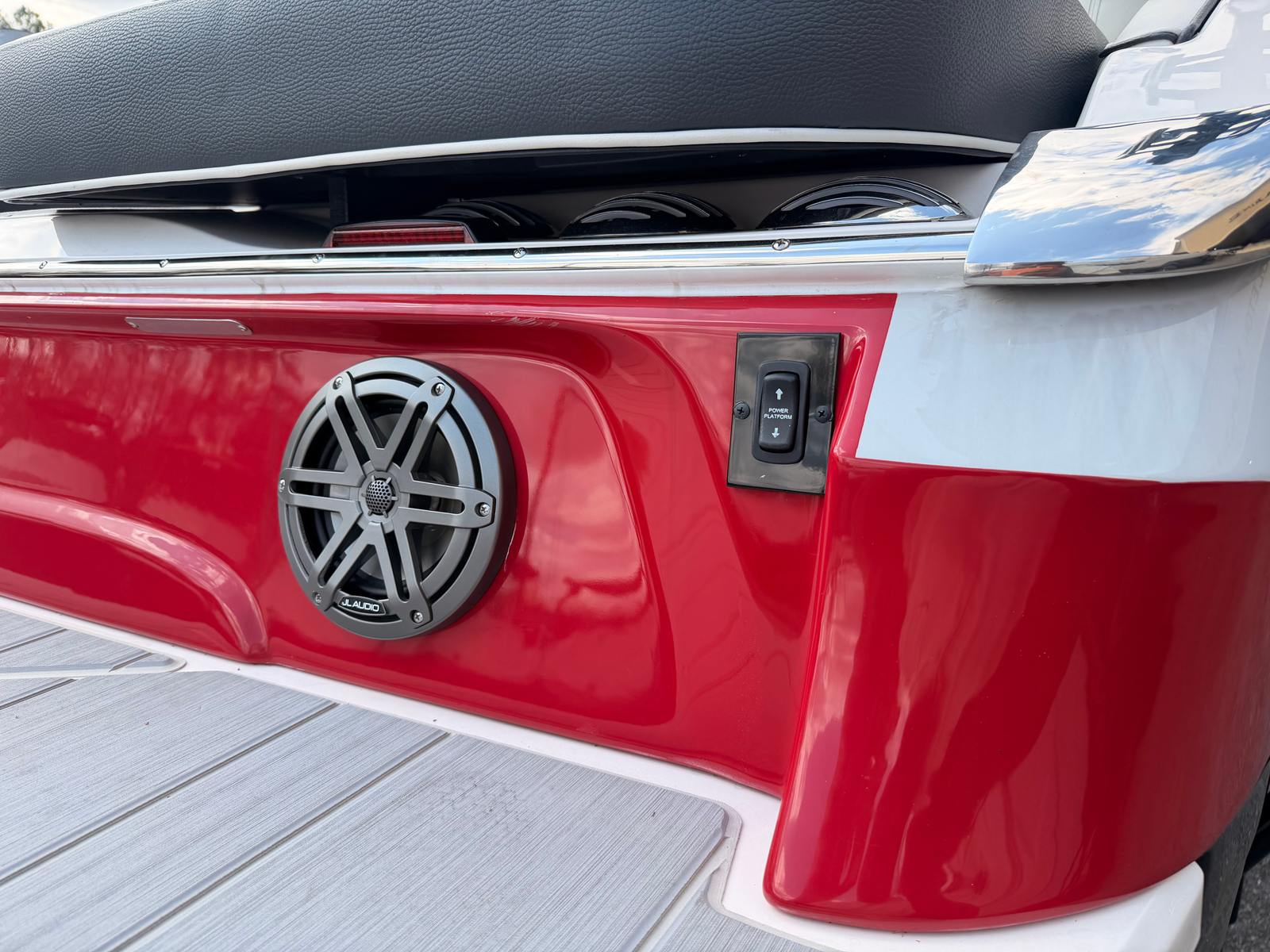 Step aboard the Regal LS4 Surf and discover a world of premium features designed to elevate your boating experience. The cockpit is adorned with a luxurious Seagrass Mat, offering both comfort and style underfoot. The SeaDek Swim Platform provides a safe and slip-resistant surface for swimmers and sunbathers, making it easy to enjoy the water with confidence. The dual battery switch with tray and cables ensures you have dependable power for all your adventures, while the travel storage cover and Black Canvas protect your boat from the elements when not in use. Every detail of the LS4 Surf is crafted for convenience, durability, and enjoyment, making it a standout choice among Bowrider boats for sale.