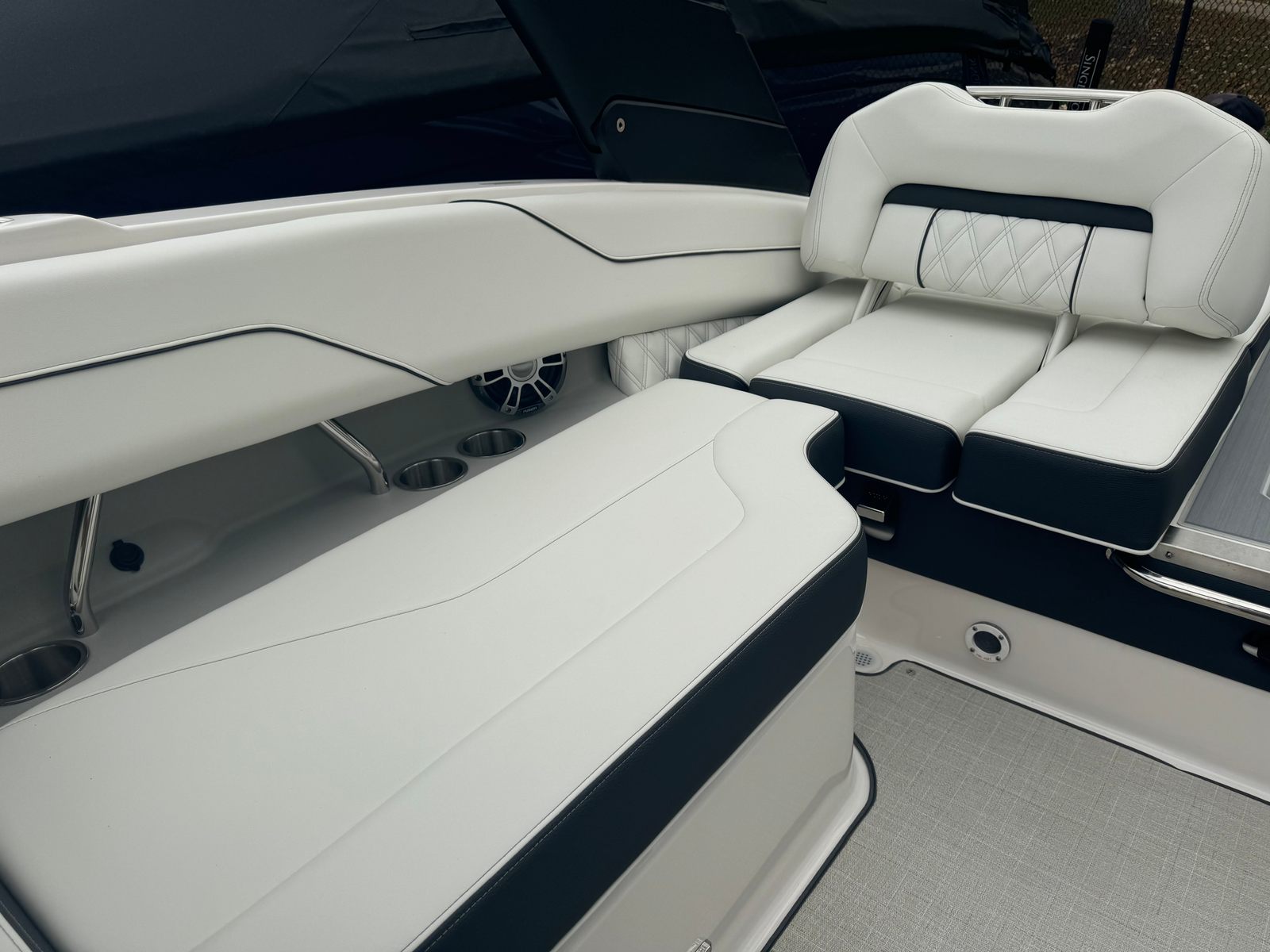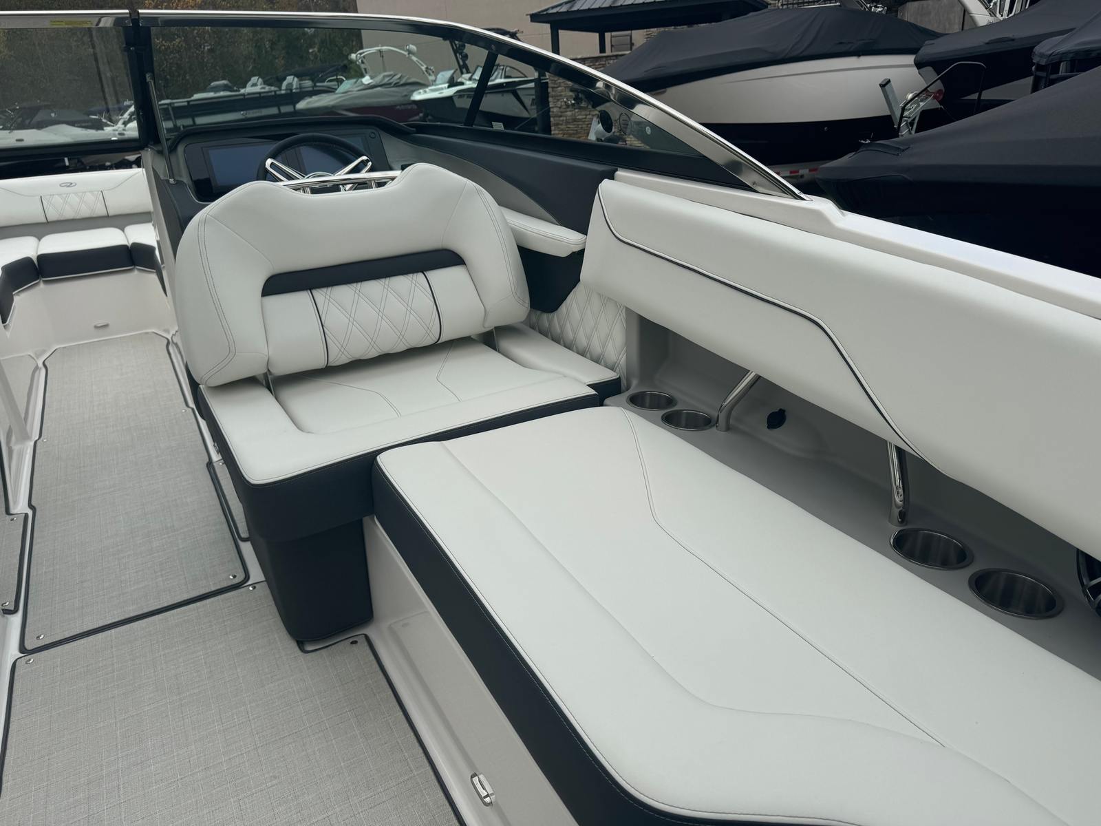 Practicality meets luxury in the Regal LS4. The dual battery switch system ensures you always have reliable power, making it easy to run your electronics and entertainment systems without worry. The travel storage cover protects your investment from the elements, while the durable black canvas adds an extra layer of security and style.Docking and maneuvering are simplified thanks to the boat’s responsive handling and advanced propulsion system. The seagrass mat in the cockpit not only adds comfort but also makes cleaning up after a day on the water quick and easy. With ample storage throughout the boat, you’ll have plenty of space for gear, snacks, and water toys, keeping the deck clutter-free and ready for fun.Fuel efficiency is another highlight, allowing you to spend more time enjoying the water and less time at the pump. The LS4’s smart design ensures that every outing is as convenient as it is enjoyable, making it a practical choice for both new and experienced boaters.