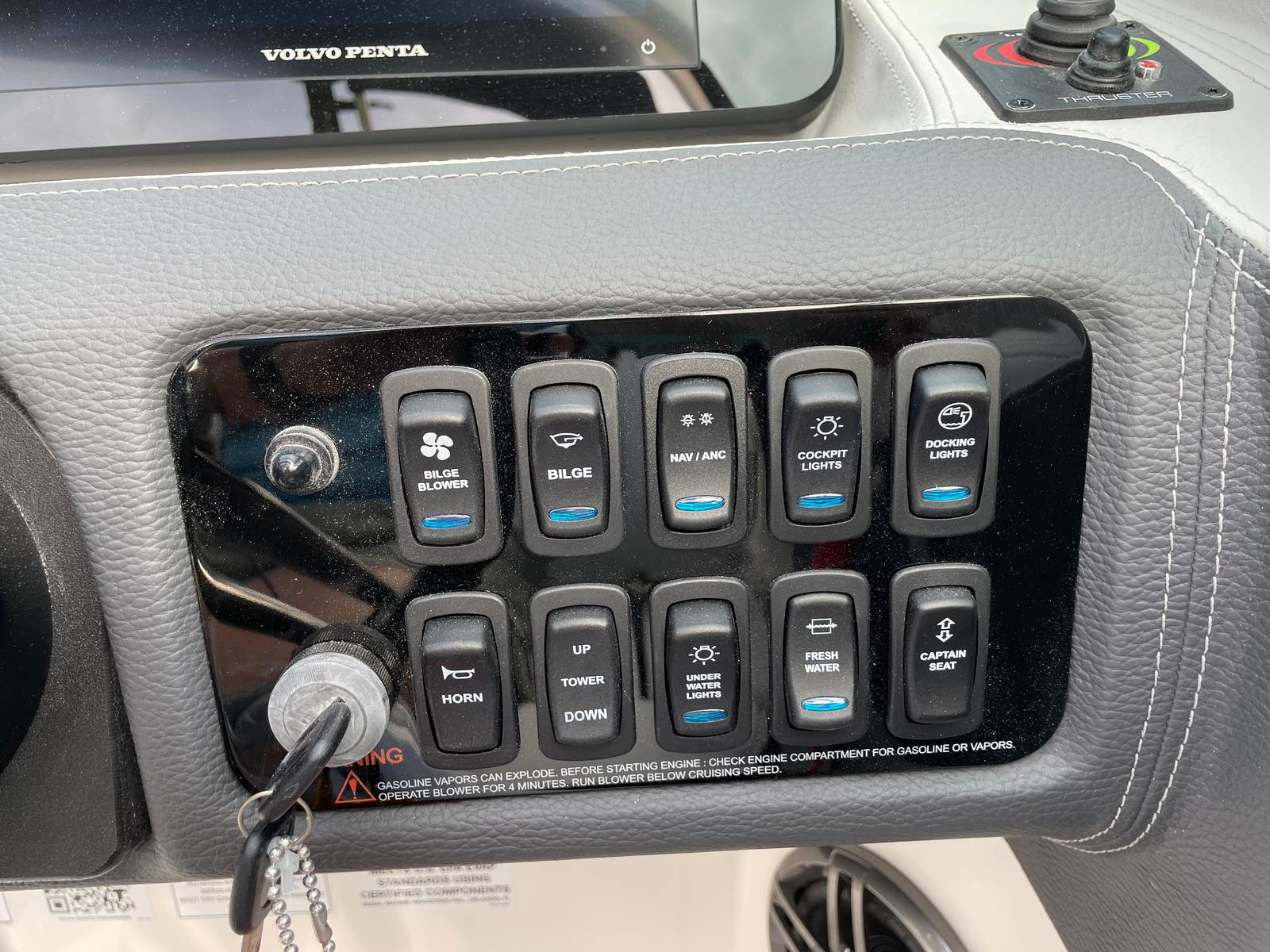 Under the hood, the Regal LS4 is powered by a robust single engine delivering an impressive 350 horsepower. This powerful setup ensures exhilarating acceleration, smooth cruising, and responsive handling, whether you’re slicing through waves or enjoying a leisurely ride. The advanced engineering behind the LS4’s propulsion system guarantees a thrilling yet controlled boating experience, making it ideal for water sports, day trips, or simply soaking up the sun. The dual battery switch with tray and cables, along with a battery charger, ensures you have reliable power for all your adventures, giving you peace of mind on every outing.