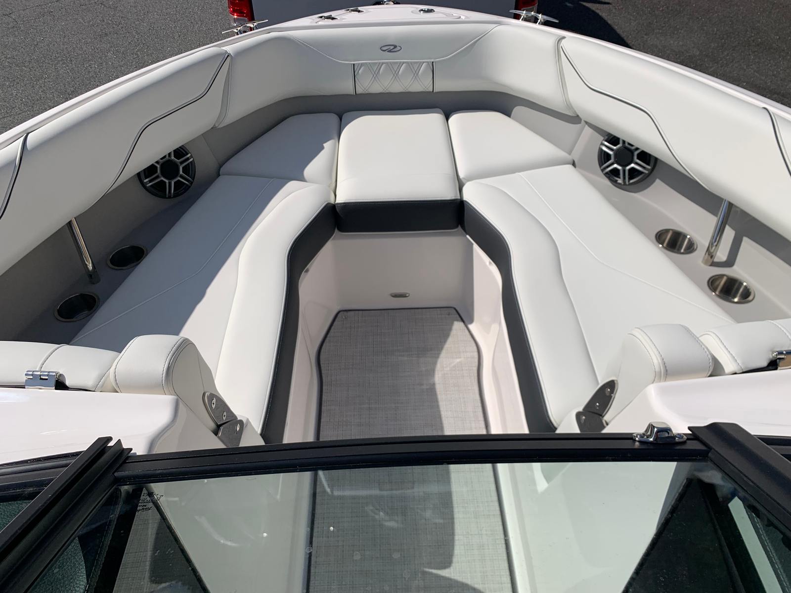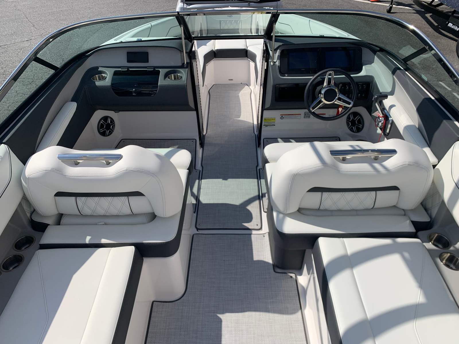 Practicality meets luxury in the Regal LS4 Bowrider. The generous storage options make it easy to stow gear, water toys, and personal items, keeping the deck clutter-free and organized. The Travel Storage Cover protects your investment, while the Cockpit Seagrass Mat ensures easy cleanup after a day of fun. The Dual Battery Switch and Battery Charger provide peace of mind, allowing you to power electronics and accessories without draining the main battery.Docking is a breeze thanks to the LS4’s responsive handling and manageable size. Whether you’re pulling into a marina or anchoring in a secluded cove, this Regal boat for sale offers the maneuverability and control you need for stress-free operation. Fuel efficiency is enhanced by the single Volvo V8 engine, making it economical to run and maintain.