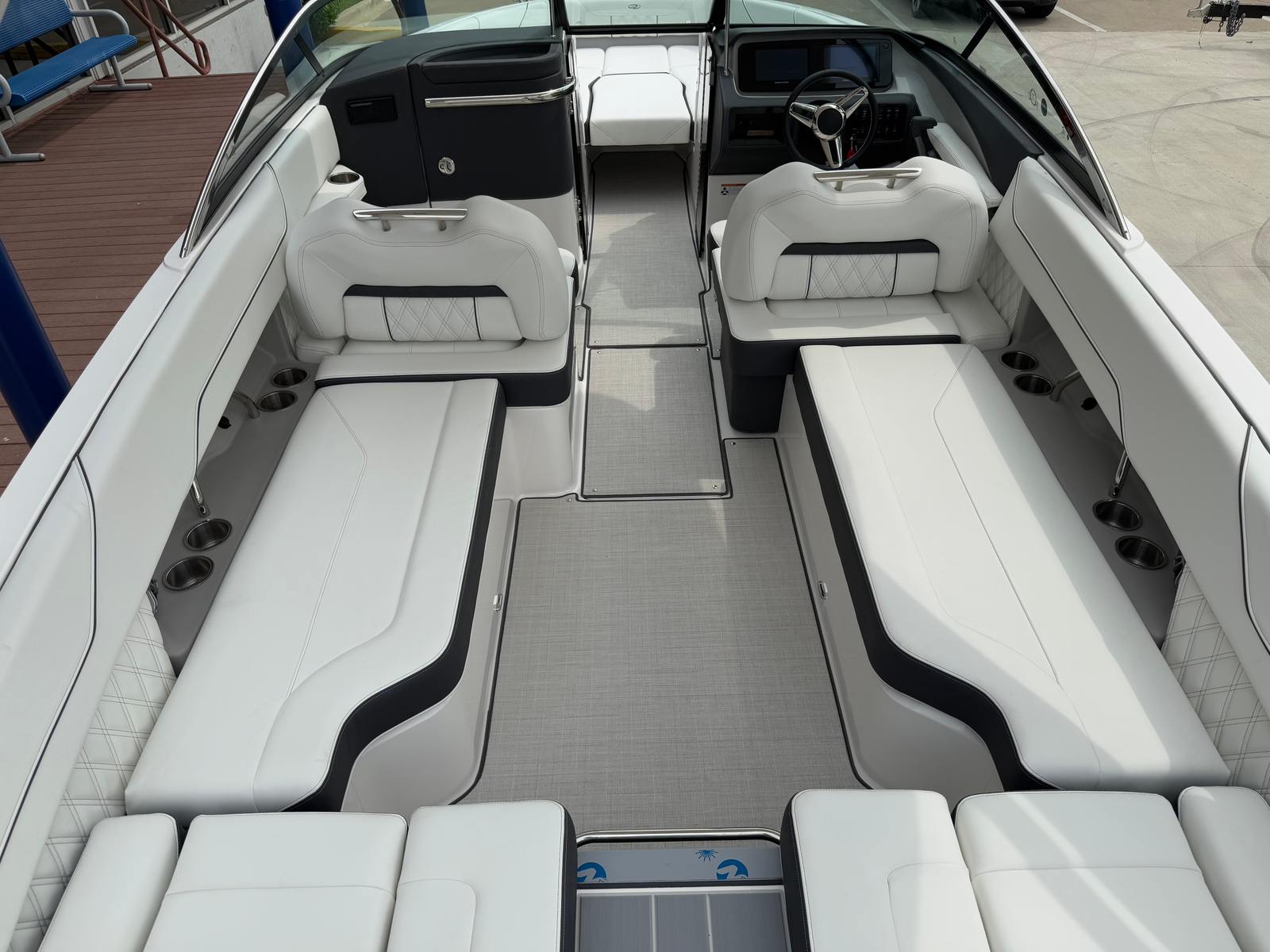Practicality is at the heart of the Regal LS6 Bowrider’s design. The ample storage options allow you to stow gear, snacks, and personal items securely, keeping the deck clutter-free and organized. Docking is a breeze thanks to the boat’s manageable length and responsive controls, making it ideal for both seasoned captains and those new to boating. The fuel-efficient engine helps you make the most of every trip, reducing operating costs and environmental impact.The dual battery system ensures reliable power for all your electronics and accessories, while the battery charger keeps everything running smoothly. The travel storage cover and durable canvas protect your boat from sun, rain, and debris, preserving its beauty and value for years to come. The SeaDek Swim Platform and Seagrass Mat add comfort and safety, making it easy to transition from boating to swimming or relaxing on deck.