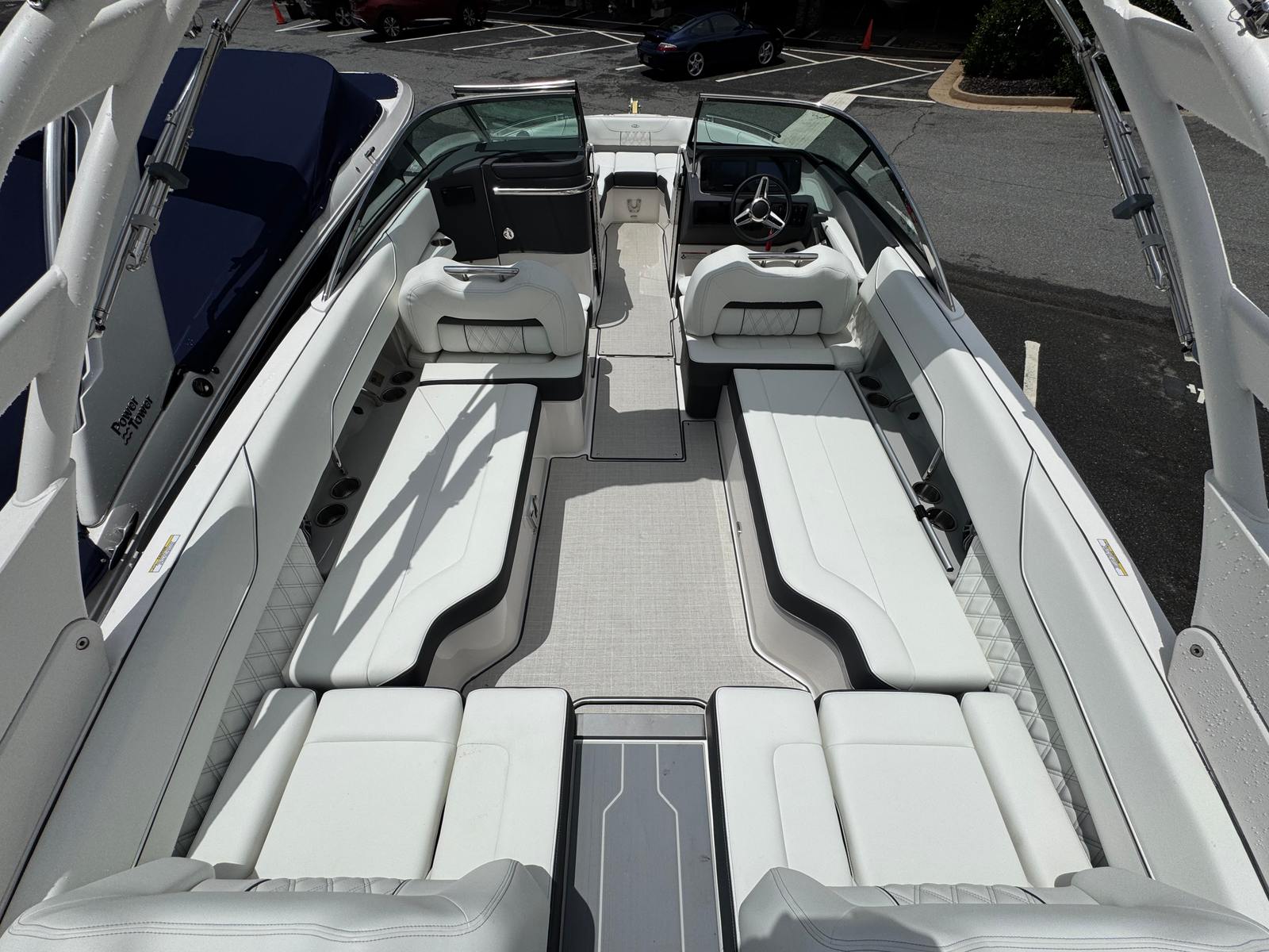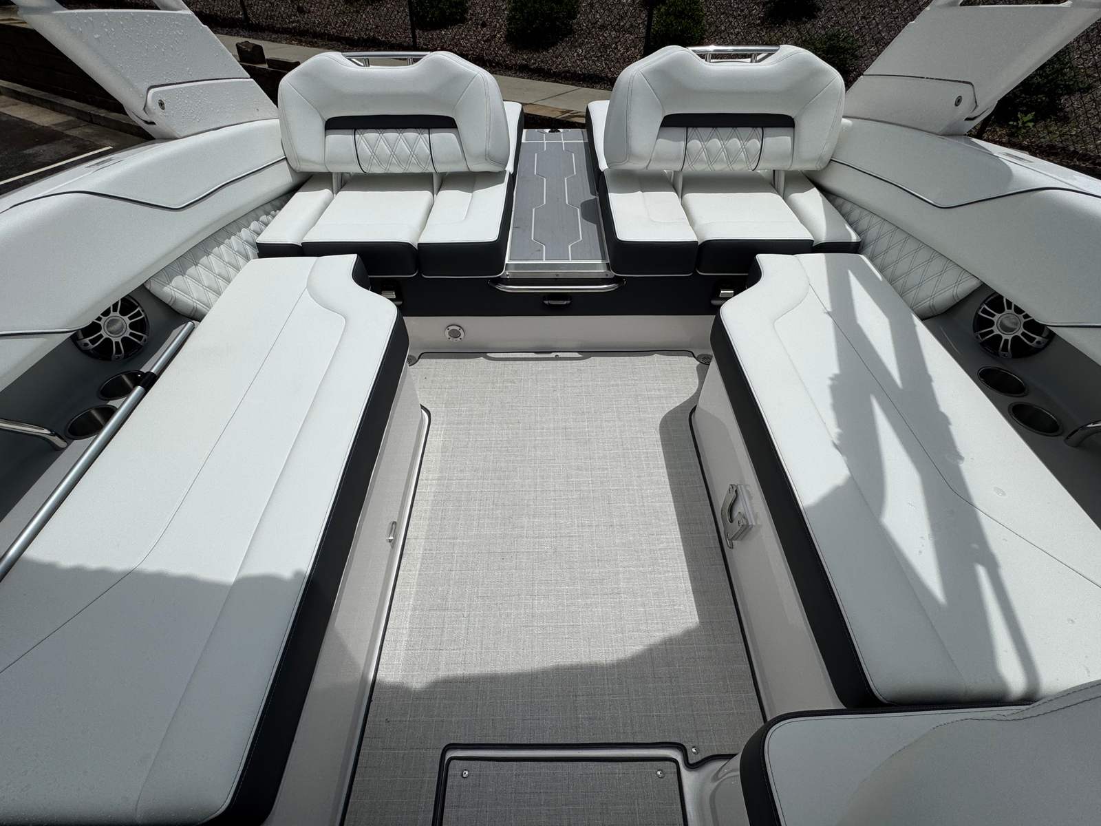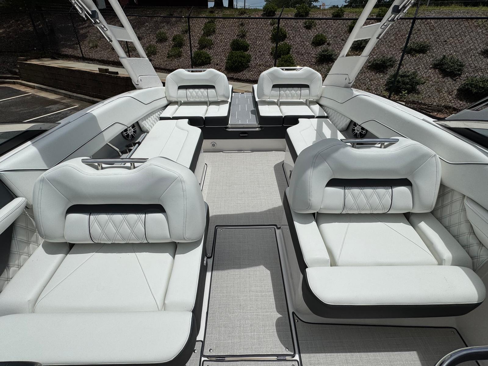Owning the 2025 Regal LS6 Bowrider means embracing a lifestyle of fun, relaxation, and social connection. The spacious layout provides plenty of room for family and friends to spread out, relax, and enjoy the ride. The open bow seating invites conversation and sunbathing, while the cockpit’s ergonomic design ensures everyone has a comfortable spot. The premium sound system and customizable lighting create the perfect atmosphere for any occasion, from lively parties to tranquil sunset cruises.The LS6’s thoughtful features make every outing more enjoyable. The Underwater PowerPlatform simplifies swimming and watersports, while the Seagrass Mat adds a touch of luxury to every step. With ample storage throughout the boat, you can bring along all your essentials for a day on the water, from coolers and water toys to extra towels and gear.