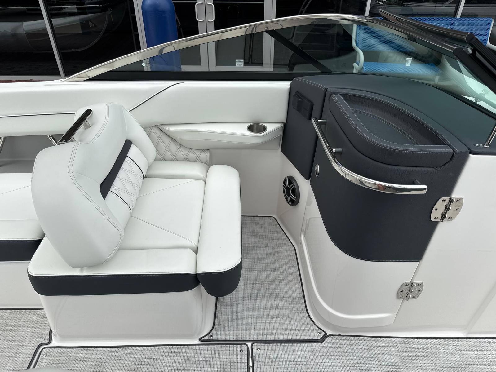 Owning the Regal LS6 Bowrider is all about maximizing your enjoyment on the water. The spacious layout and plush Titanium interior invite you to relax, socialize, and soak up the sun with family and friends. The open bow design creates a welcoming atmosphere, perfect for lounging, sunbathing, or taking in panoramic views. The thoughtful arrangement of seating and storage ensures that everyone has room to spread out, while still keeping gear and essentials organized and accessible. With its powerful engine and agile handling, the LS6 is equally suited for thrilling water sports, leisurely cruises, or anchoring at your favorite swimming spot.