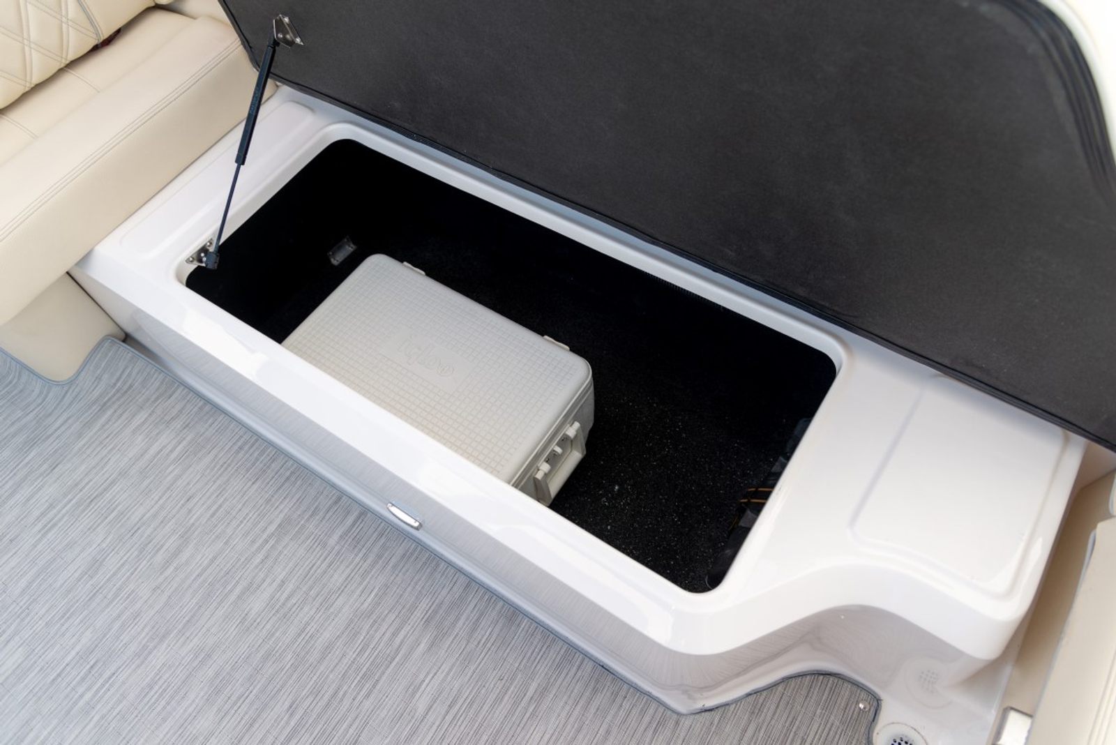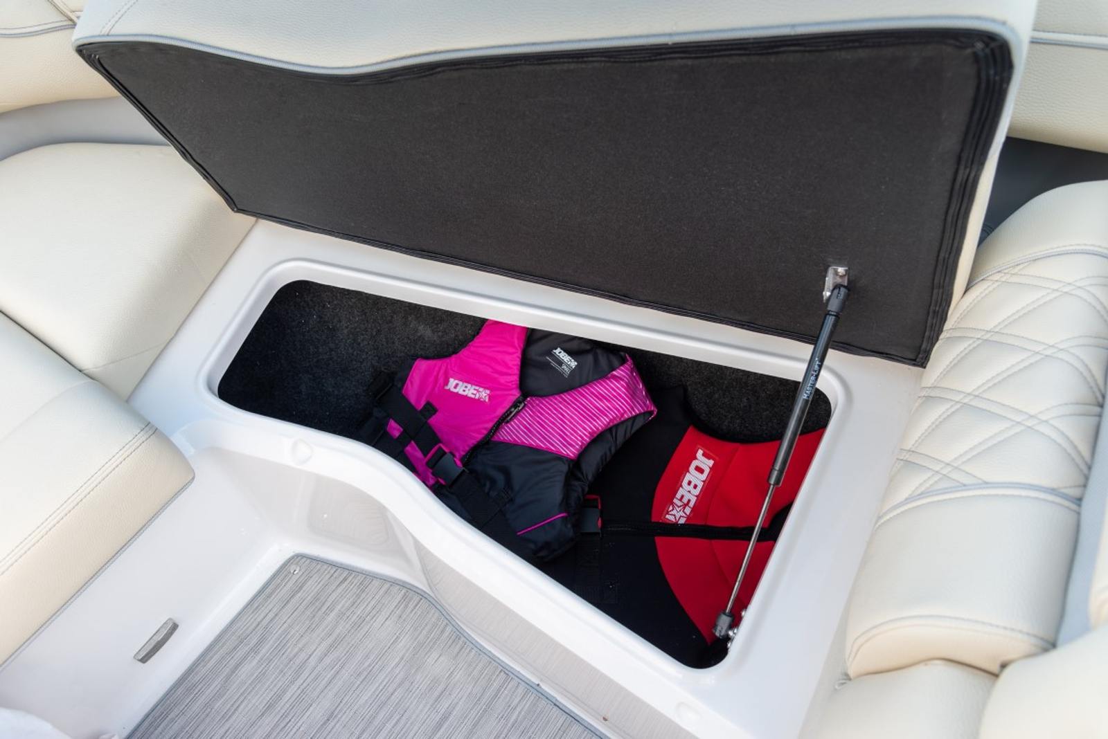 The Regal LS6 Bowrider is designed with practicality in mind, making ownership easy and enjoyable. The generous storage compartments allow you to stow gear, water toys, and personal items securely, keeping the deck clutter-free. Docking is a breeze thanks to the boat’s responsive handling and manageable size, while the efficient engine ensures you spend more time enjoying the water and less time refueling.The dual battery system and onboard charger provide peace of mind, ensuring your electronics and accessories are always powered up and ready to go. The durable cockpit mat and protective covers help maintain the boat’s pristine condition, reducing maintenance and preserving its value over time.