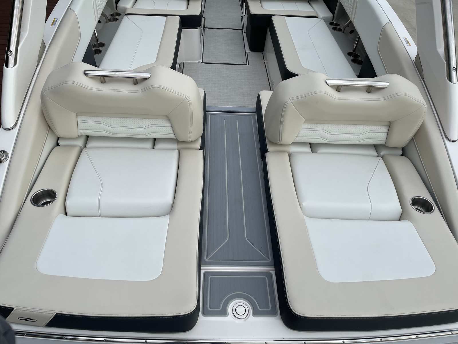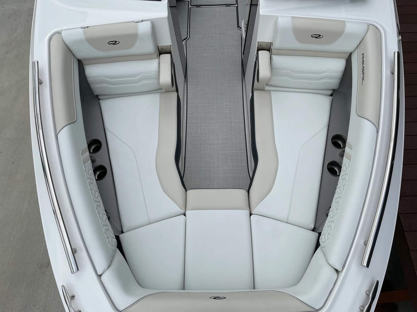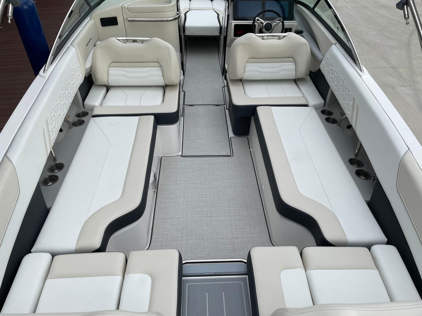The Regal LS6 is designed with both style and functionality in mind, boasting a range of special features that enhance every aspect of your boating experience. The hull is finished in a striking Tahiti Beach White, complemented by a sophisticated Steel Grey bootstripe and a Seafoam bottom color. The swim platform matches the bottom color, creating a seamless and visually appealing look that sets this boat apart from the crowd.Inside, the LS6 features a thoughtfully designed interior with color zones that include Pure White, Graphite, Vista White, and Lunar Grey, creating a modern and inviting atmosphere. The spacious bow seating area is perfect for lounging in the sun or socializing with guests, while the ergonomic helm provides excellent visibility and intuitive controls for the captain. Every detail, from the upholstery to the layout, is crafted to maximize comfort and enjoyment on the water.