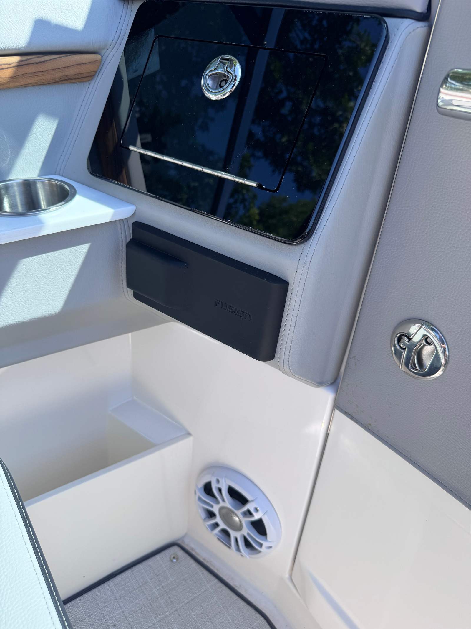 Powering the LS9 Surf is a robust single engine delivering an impressive 380 horsepower. This configuration ensures smooth acceleration, responsive handling, and plenty of power for watersports or cruising. Whether you’re carving through waves or gliding across calm waters, the LS9 Surf’s performance capabilities make every outing exciting. The advanced engine technology not only provides exhilarating speed but also enhances fuel efficiency, allowing you to spend more time enjoying the water and less time refueling. Regal’s engineering expertise guarantees a ride that’s both thrilling and reliable, making this Bowrider boat for sale a standout in its class.