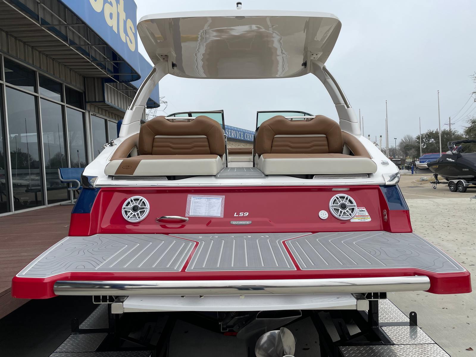 The 2025 Regal LS9 Bowrider is a remarkable vessel, measuring an impressive 29 feet in length. Its sleek profile and modern lines are accentuated by a Mediterranean Blue hull, complemented by a striking Flame Red bootstripe and a matching Mediterranean Blue bottom color. The LS9’s spacious layout is thoughtfully designed to maximize comfort and usability, making it ideal for both relaxing cruises and lively gatherings. As a new Regal boat for sale, this model stands out with its pristine condition and contemporary styling, ensuring you’ll be the envy of every marina.