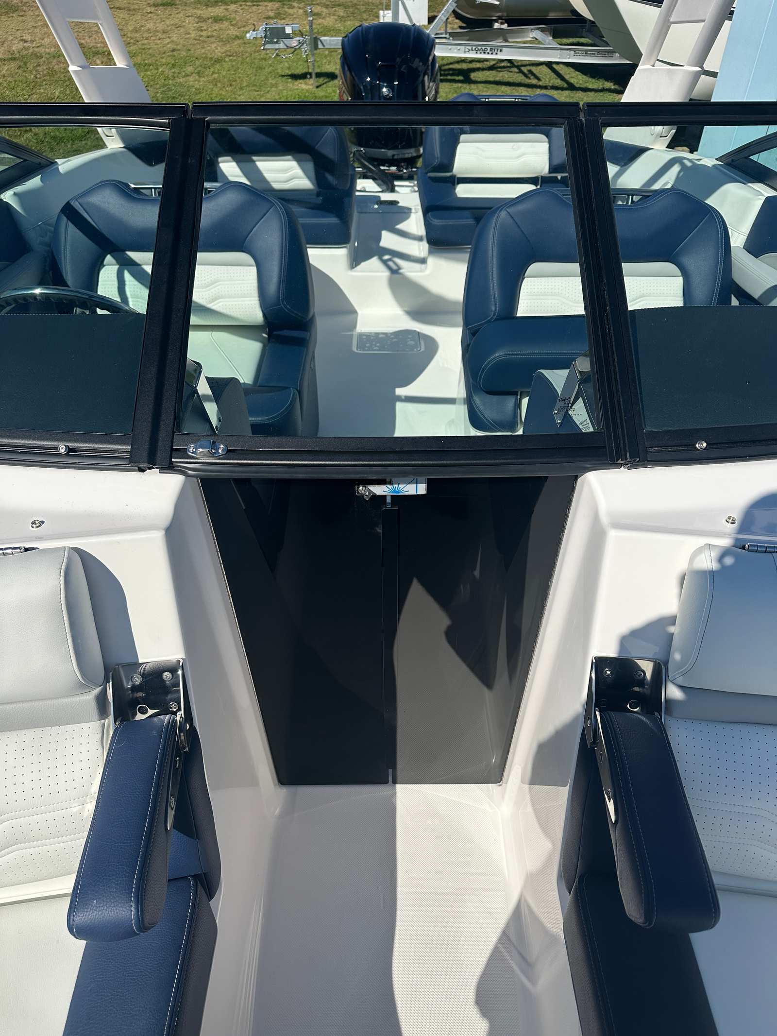 The Regal LX2 is loaded with features that enhance both functionality and enjoyment on the water. The striking Steel Gray hull and Tahiti Beach White bottom create a modern, eye-catching aesthetic, while the Steel Gray boot stripe adds a touch of elegance. The Mediterranean Blue canvas provides stylish protection from the elements, ensuring comfort in any weather. Bow and cockpit covers keep your boat protected when not in use, preserving its pristine condition for years to come.For added convenience and peace of mind, the dual battery switch with tray and cables ensures reliable power management, so you can enjoy longer days on the water without worry. The transom shower and pressure water package make rinsing off after a swim easy and convenient, adding a touch of luxury to your boating experience. The stainless steel upgrade package not only enhances durability but also adds a premium look and feel throughout the boat.Water sports enthusiasts will appreciate the dedicated tow pylon, making it easy to enjoy wakeboarding, tubing, and other activities. The bow walk-thru doors provide seamless access between the bow and cockpit, improving safety and convenience for passengers moving around the boat.