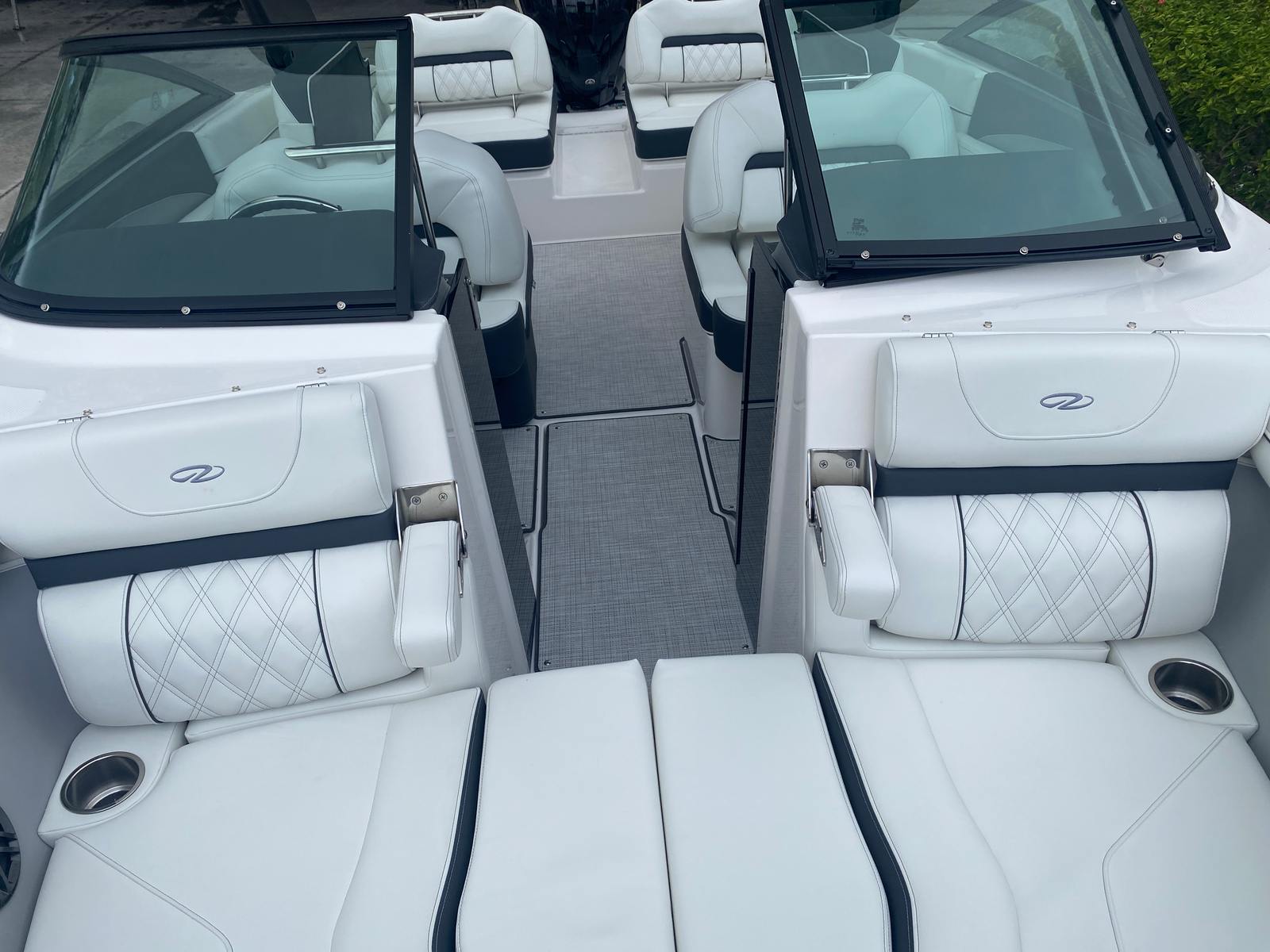 The Regal LX2 Bowrider is loaded with features designed to enhance your boating experience. The Bow & Cockpit Covers provide essential protection from the elements, keeping your boat in pristine condition when not in use. Step onto the Cockpit Seagrass Mat and enjoy the comfort and style it brings to the interior, creating a welcoming space for relaxation and socializing. The Dual Battery Switch with Tray and Cables ensures reliable power management, giving you peace of mind during extended outings. The included Battery Charger keeps your systems ready to go, so you can focus on making memories instead of worrying about maintenance.The LX2’s thoughtful design extends to every detail, from the spacious seating arrangements to the intuitive layout that maximizes both comfort and functionality. The Titanium accents and premium materials elevate the onboard atmosphere, making every journey feel like a special occasion.