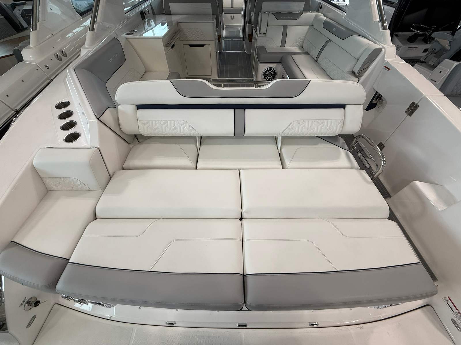 Power and precision are at the heart of the Regal LX36. Equipped with twin engines that deliver a combined 800 horsepower, this bowrider offers exhilarating acceleration and smooth handling, ensuring every outing is filled with excitement. The advanced hull design provides stability and agility, allowing you to navigate a variety of water conditions with confidence. Whether you are gliding across calm waters or tackling choppier seas, the LX36’s performance capabilities make it a standout choice for boating enthusiasts who crave both speed and control.
