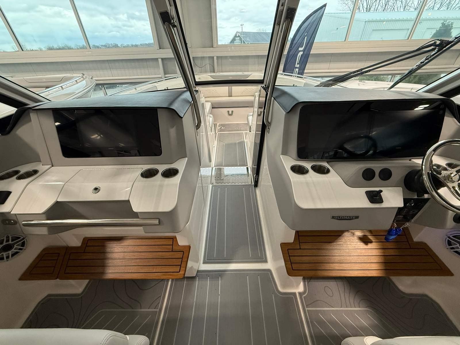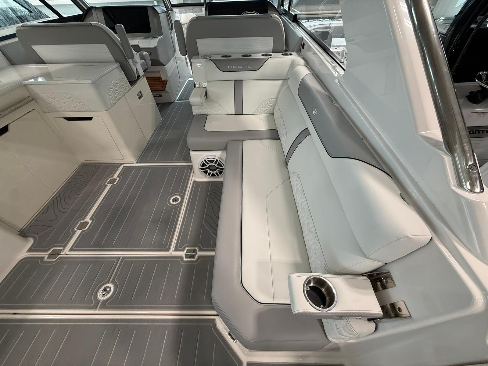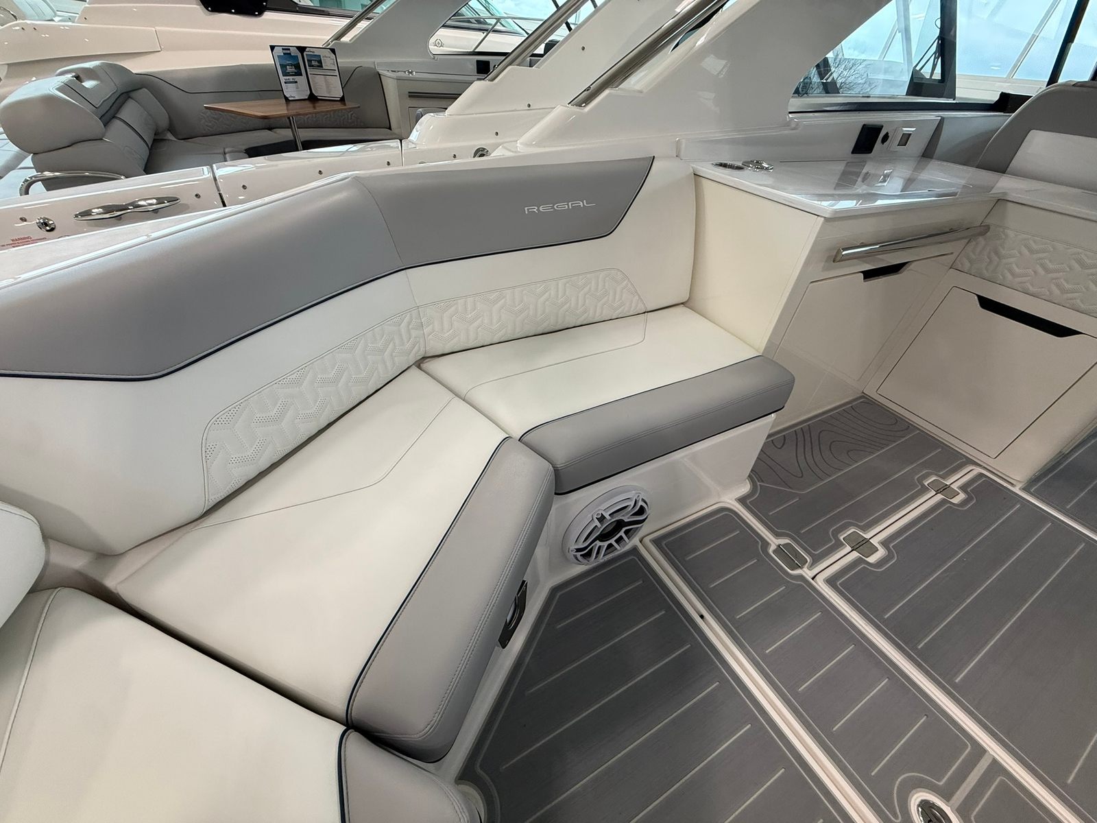 The 2026 Regal LX36 is loaded with premium features that elevate your boating experience to new heights. The Aft Cockpit Canvas - Palm Beach Enclosure provides protection from the elements, allowing you to enjoy your time on the water regardless of the weather. The Anchor Windlass - All Chain system ensures effortless anchoring, while the Bow Thruster offers enhanced maneuverability, making docking and tight turns a breeze. The Bow Cover White Stamoid and Canvas - White add a touch of elegance and durability, perfectly complementing the boat’s Mediterranean Blue bottom and Tahiti Beach White bootstripe.For those who love to entertain, the cockpit is equipped with a refrigerator to keep your refreshments chilled and a beautiful Teak Cockpit Table that invites guests to gather and relax. The Companion Garmin 8616 navigation system provides state-of-the-art technology, ensuring you stay on course and connected wherever your adventures take you.