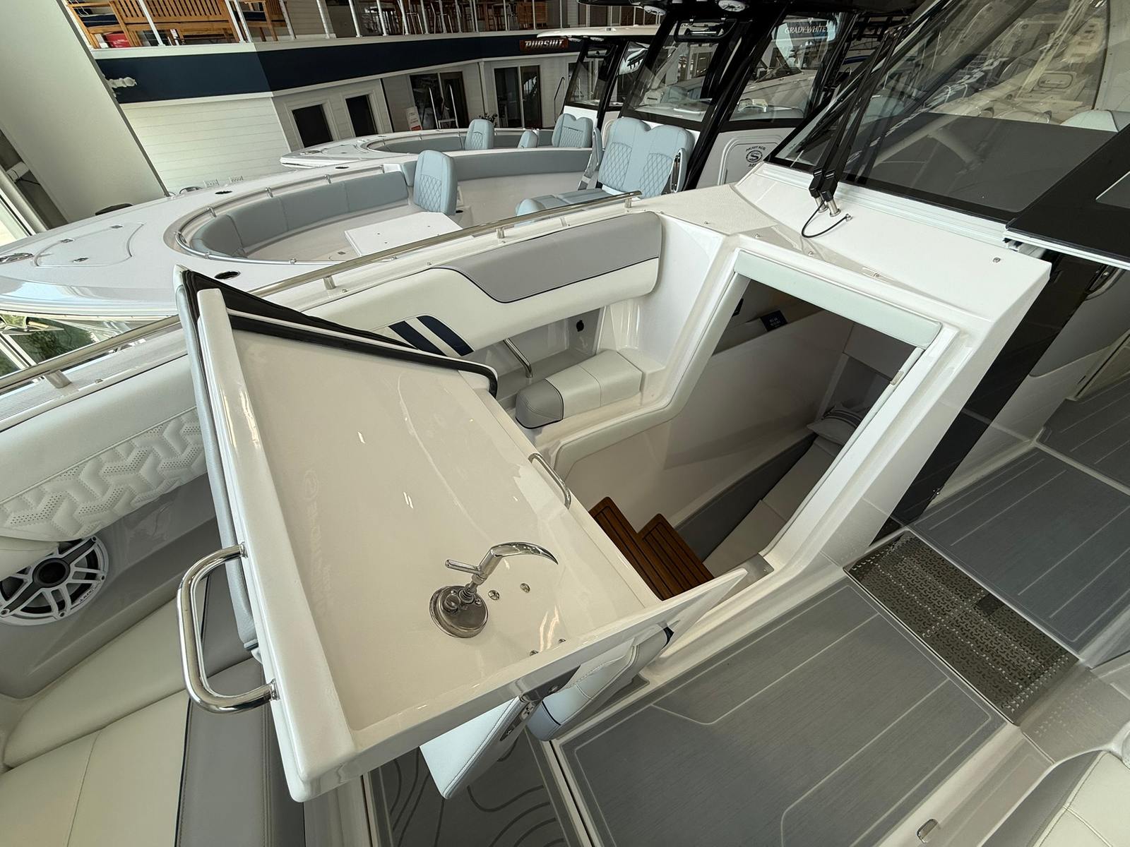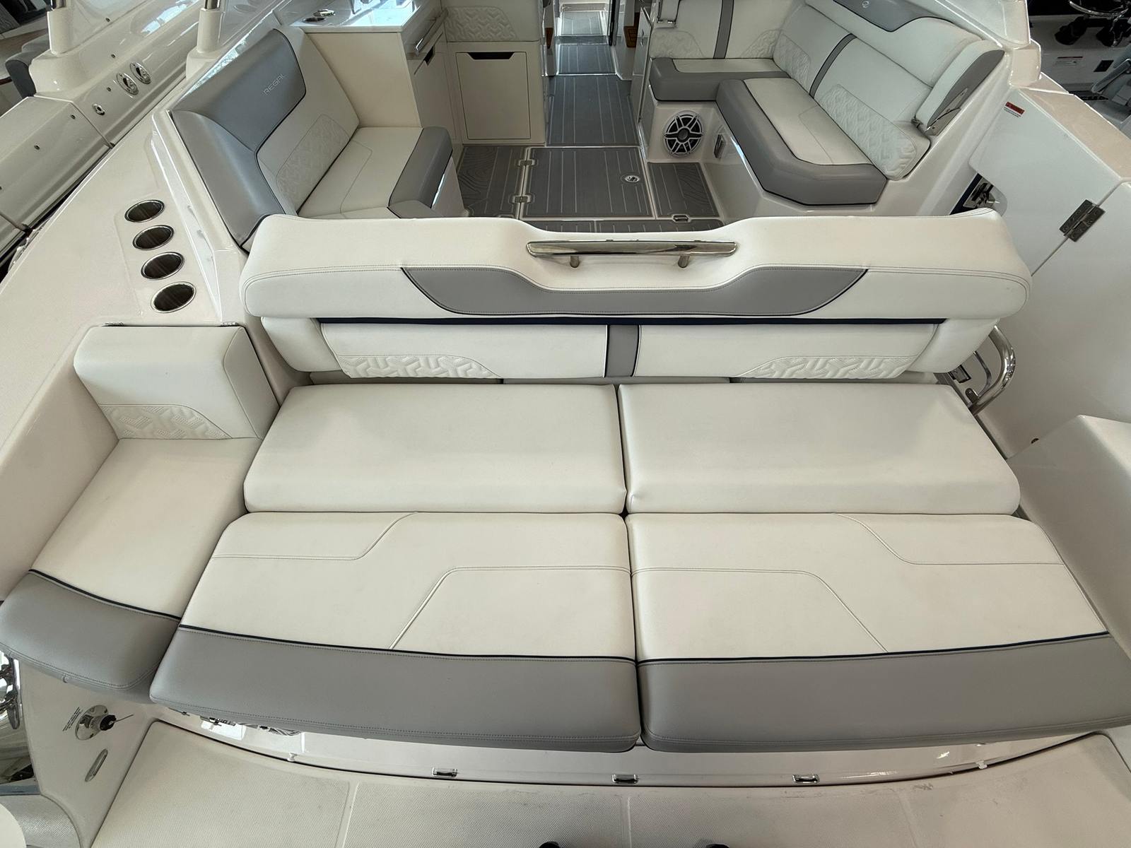 Owning the Regal LX36 bowrider is about more than just having a boat—it’s about embracing a lifestyle of fun, relaxation, and adventure. The spacious layout offers ample seating and room to move, making it ideal for socializing, sunbathing, or simply enjoying the view. The luxurious finishes and thoughtful amenities create an inviting atmosphere, whether you are hosting a lively gathering or seeking a peaceful retreat on the water.The advanced features of the LX36 not only enhance comfort but also provide peace of mind. The Palm Beach Enclosure keeps you protected from unexpected weather changes, while the Bow Thruster and Anchor Windlass simplify handling and anchoring, allowing you to focus on enjoying your time on board. The cockpit refrigerator and teak table make entertaining effortless, ensuring every outing is memorable.