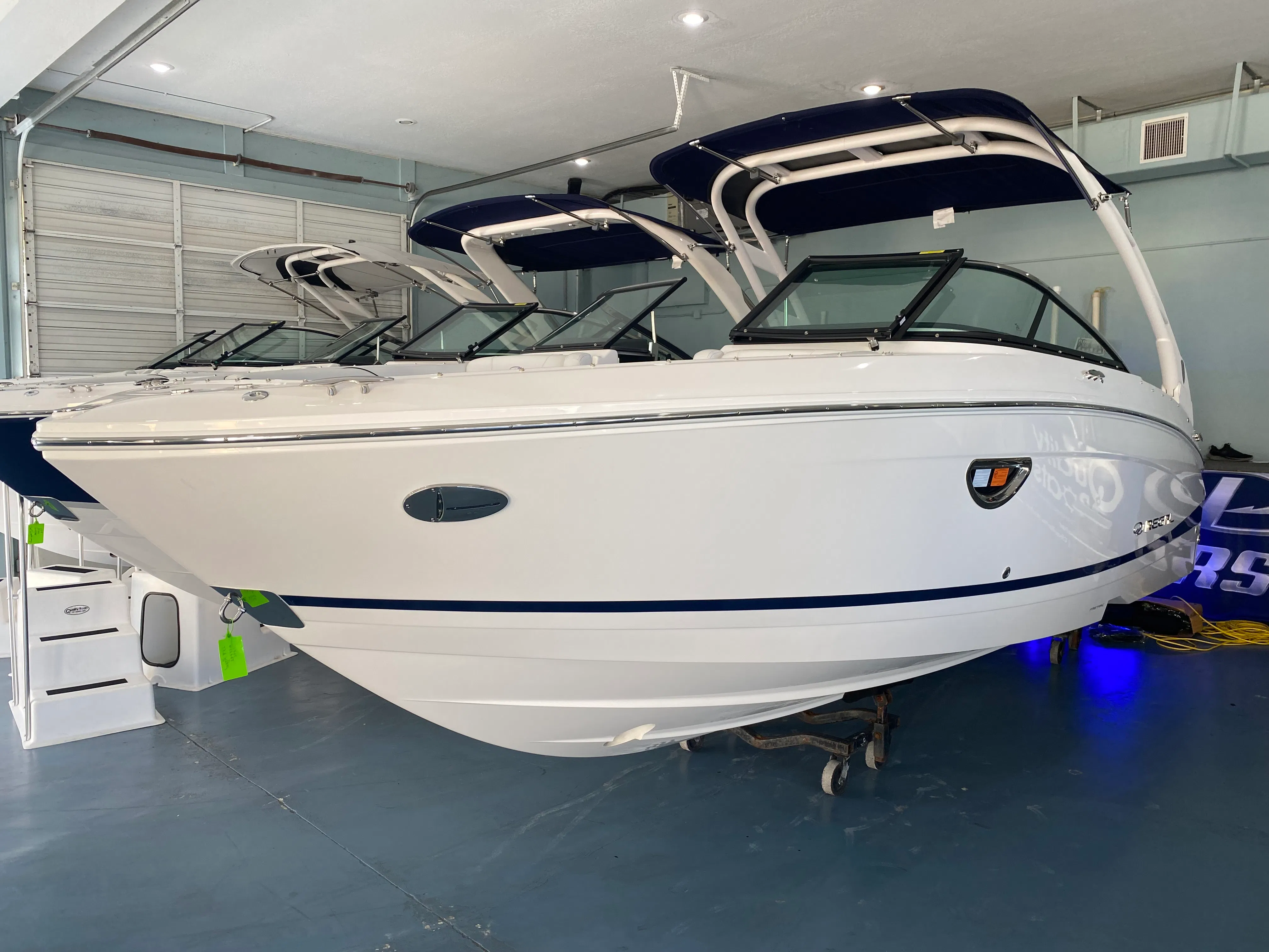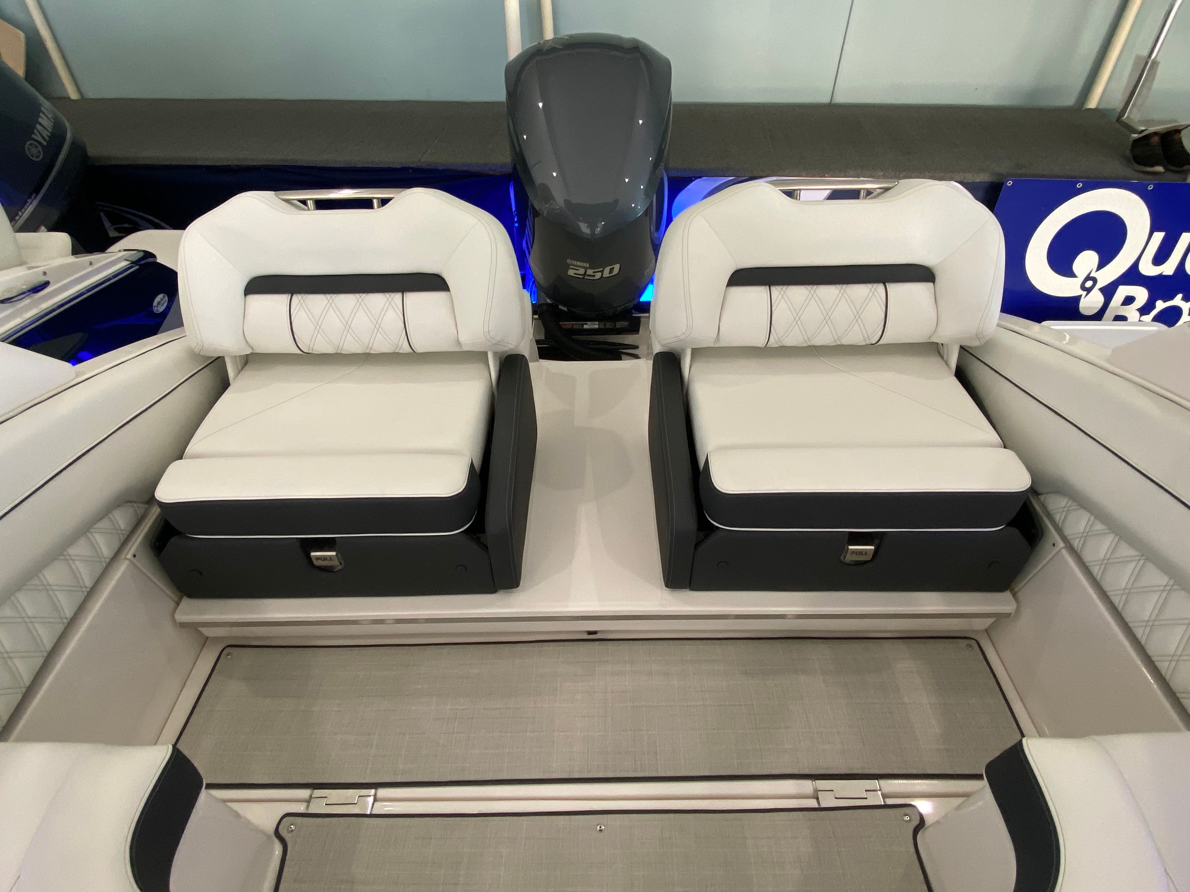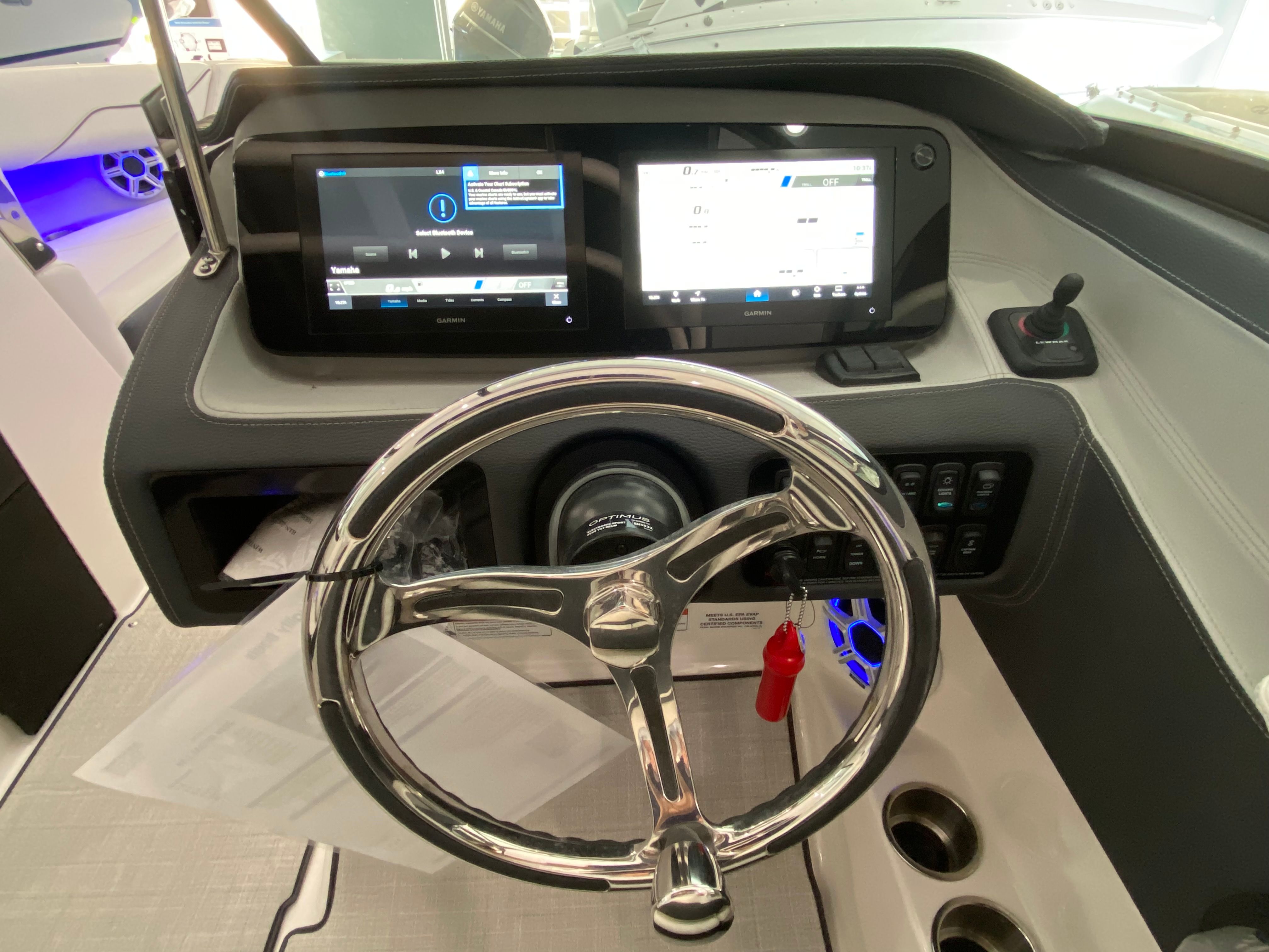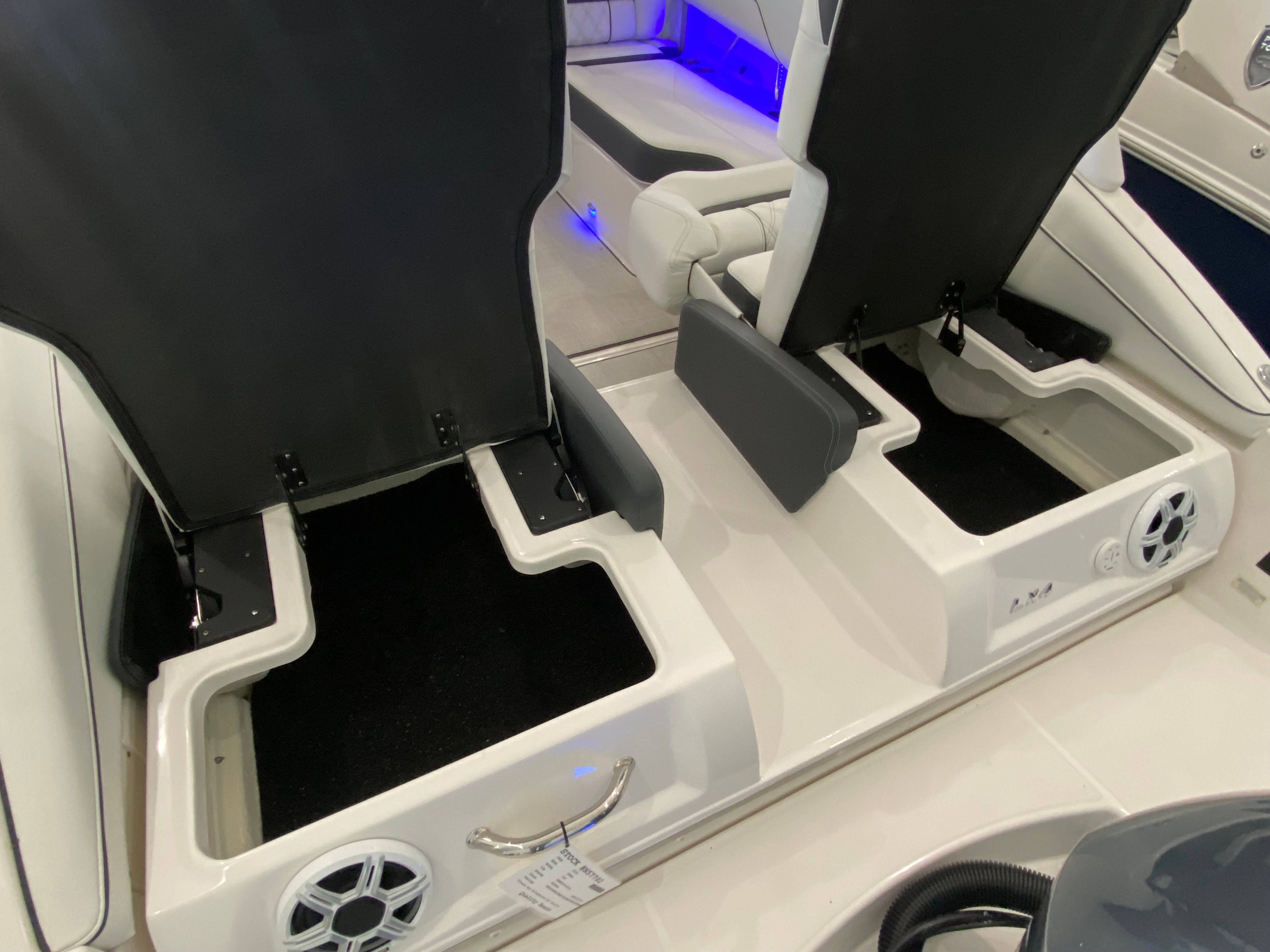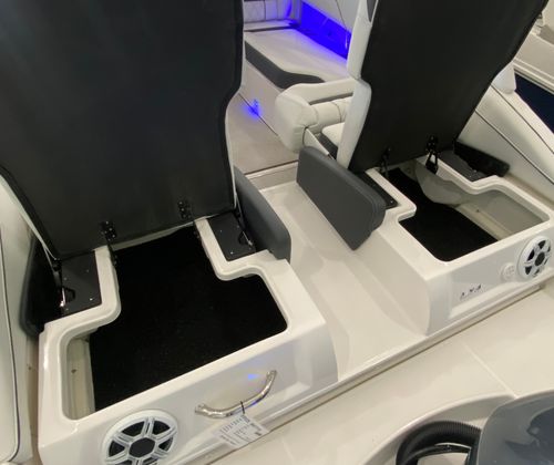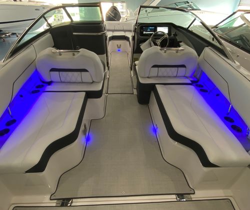 The Regal LX4 is packed with special features that set it apart from other Bowrider boats for sale. The bow thruster provides superior control, allowing you to navigate with confidence in crowded marinas or challenging conditions. Underwater lighting in vibrant blue adds a touch of elegance and creates a captivating ambiance for evening cruises. The port light—half moon design—brings natural light into the cabin, enhancing the overall atmosphere and comfort.A dedicated head compartment offers convenience for longer outings, ensuring that you and your guests can enjoy extended time on the water without sacrificing comfort. The dual battery switch with tray and cables ensures reliable power management, so you can focus on fun without worrying about electrical issues. The stainless steel upgrade package adds durability and a polished look to key hardware and fittings, while the Mediterranean Blue hull color turns heads wherever you go.Bow walk-thru doors make moving between the cockpit and bow safe and easy, while fender clips simplify docking and protect your investment. The cockpit seagrass mat provides a soft, stylish surface underfoot, enhancing both comfort and aesthetics.