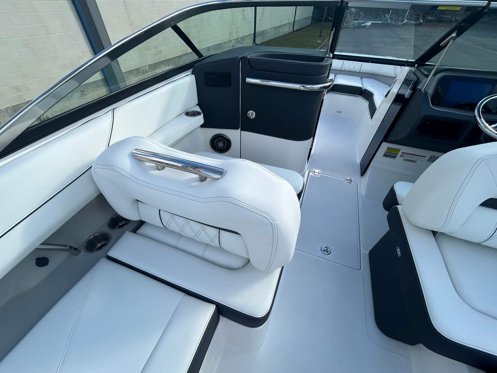 The Regal LX4 is designed with practicality in mind, offering features that simplify ownership and enhance your boating experience. The dual battery switch ensures you always have reliable power, even during long days on the water. The bow thruster makes docking and maneuvering in tight spaces a breeze, reducing stress and increasing safety. The protective bow and cockpit covers help keep your boat looking its best, while the durable Steel Grey canvas stands up to the elements.The transom shower and pressure water package provide added convenience for rinsing off gear, sandy feet, or saltwater after a swim. The spacious cockpit and bow areas offer ample room for storing water toys, coolers, and other essentials, making it easy to prepare for any adventure. The LX4’s efficient design and powerful engine also contribute to fuel savings, allowing you to spend more time enjoying the water and less time at the pump.