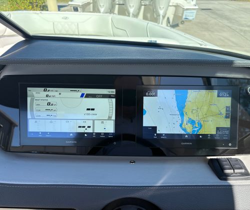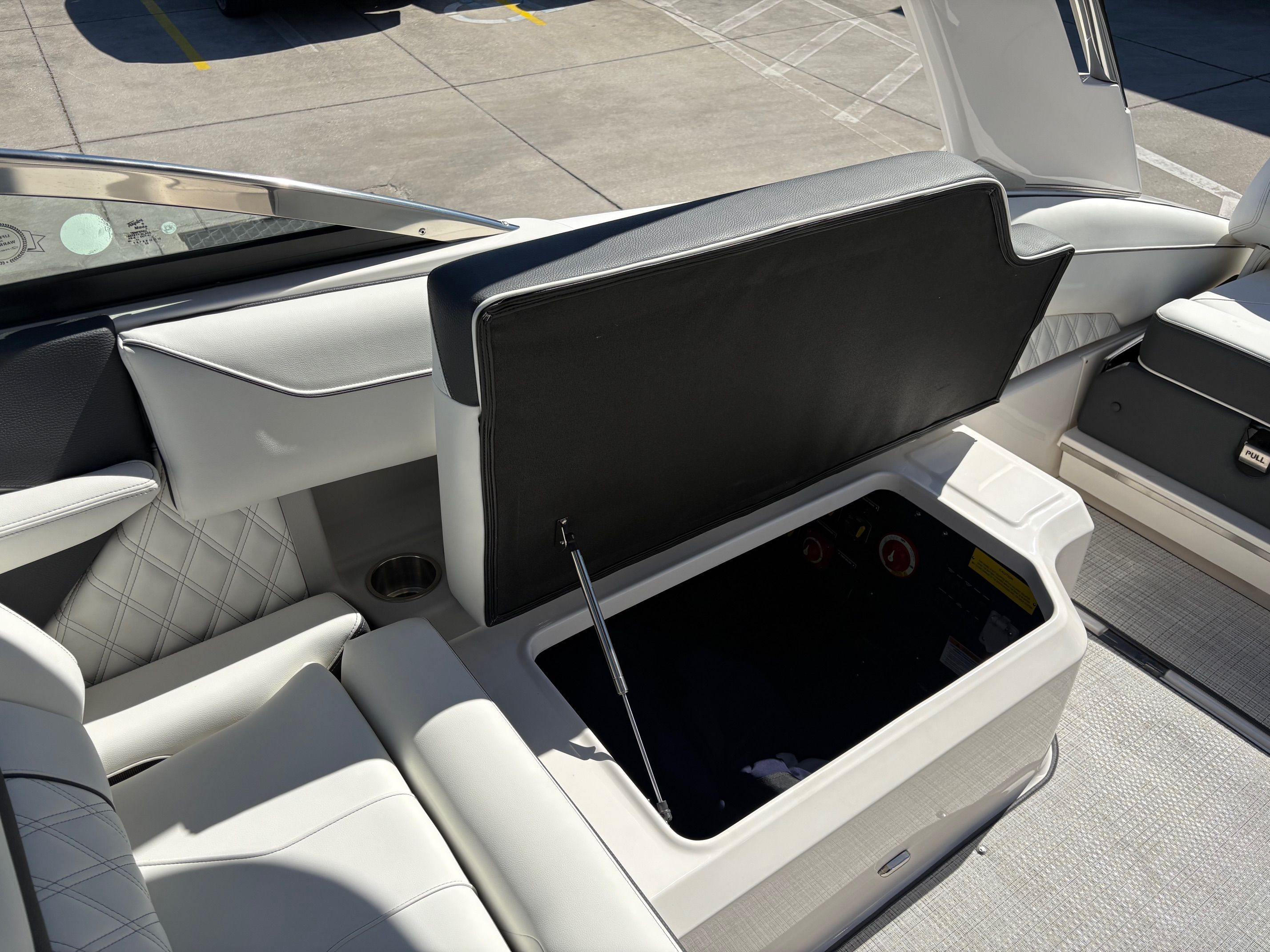The Regal LX4 Bowrider is packed with features designed to enhance your boating experience. The boat’s Mediterranean Blue canvas adds a touch of elegance and protection, while the Bow Sunshade System—manual in operation—provides welcome relief from the midday sun, allowing you and your guests to relax in comfort. Bow and cockpit covers help keep your boat looking pristine, protecting it from the elements when not in use.Step into the cockpit and you’ll find a luxurious Seagrass Mat underfoot, offering both style and comfort. The dual battery switch with tray and cables ensures reliable power management, giving you peace of mind during extended outings. Every detail, from the color-coordinated accents to the ergonomic seating, has been carefully considered to create a welcoming and functional environment.