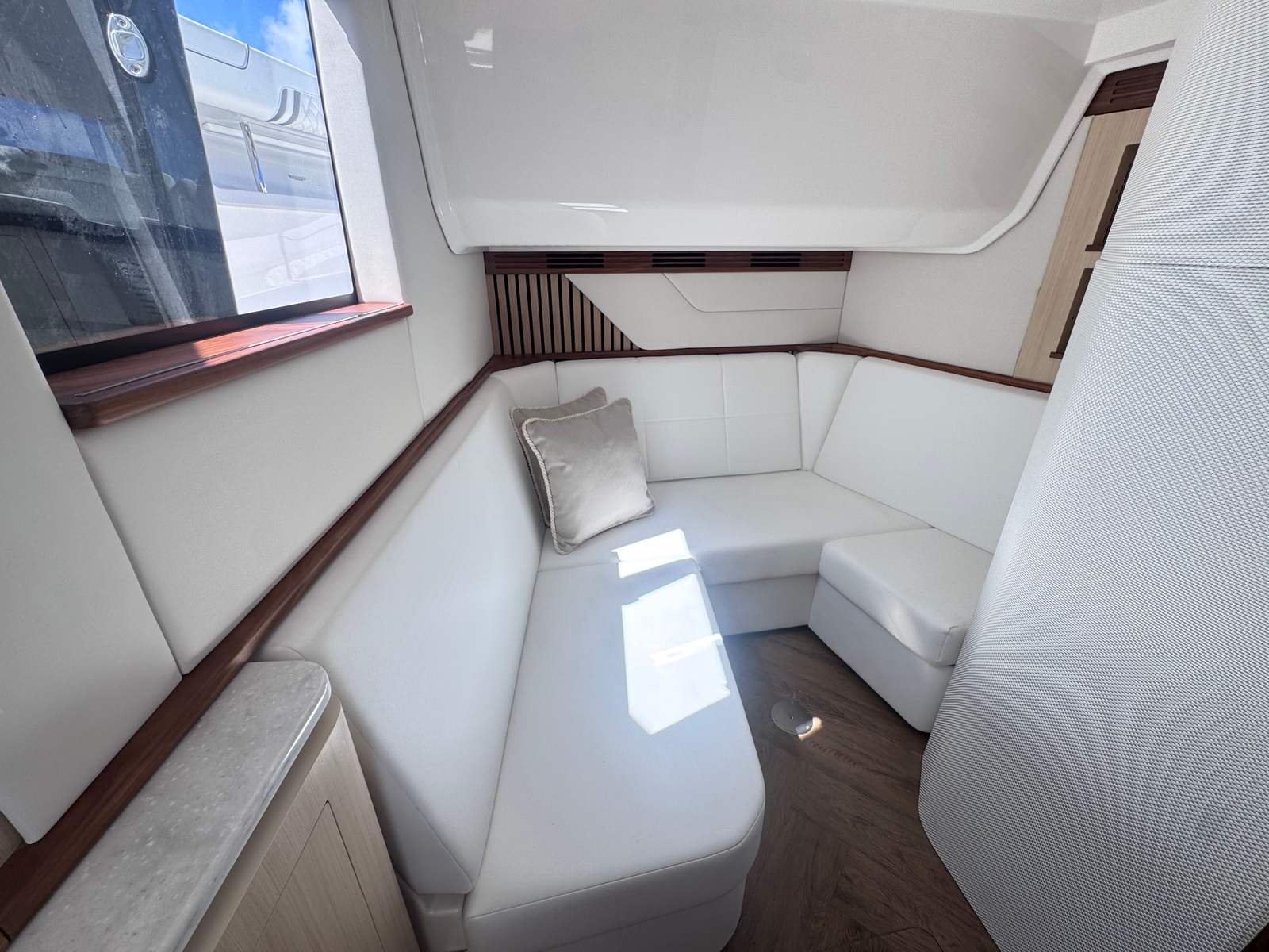 The Regal LX43 is designed with both style and substance in mind. Its exterior showcases a sophisticated color palette, featuring a Tahiti Beach White hull and bottom, complemented by a Graphite bootstripe. The yacht’s multi-zone color scheme adds a touch of modern elegance, with Zone 1 in Pure White, Zones 2, 4, and 5 in Graphite - Chil, Zone 3 in Pure White, and Zone 6 in Graphite Grey. These carefully selected colors not only enhance the yacht’s visual appeal but also reflect Regal’s commitment to craftsmanship and attention to detail.Inside and out, the LX43 is built to impress. The spacious deck layout provides plenty of room for lounging, socializing, and enjoying the sun. Every inch of the yacht is thoughtfully designed to maximize comfort and convenience, ensuring that you and your guests can relax in style. The high-quality finishes and modern materials create an inviting atmosphere, perfect for both intimate gatherings and lively celebrations.