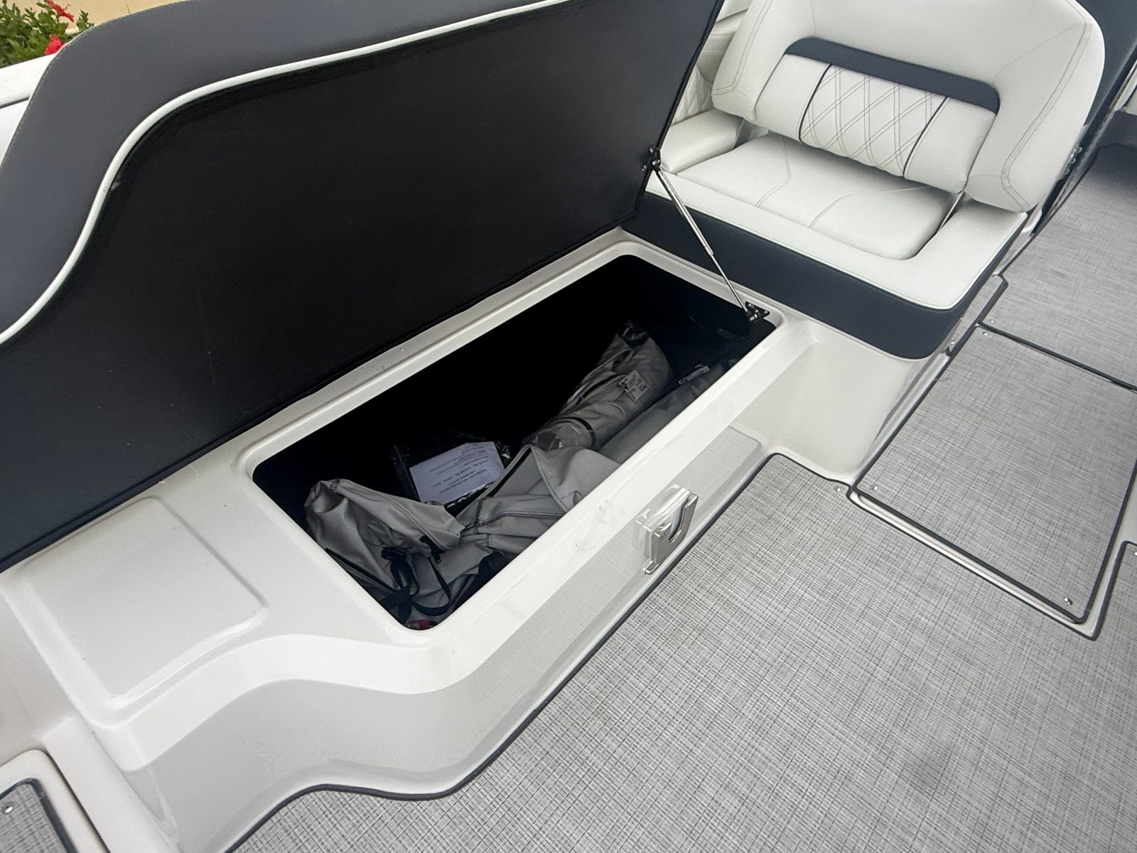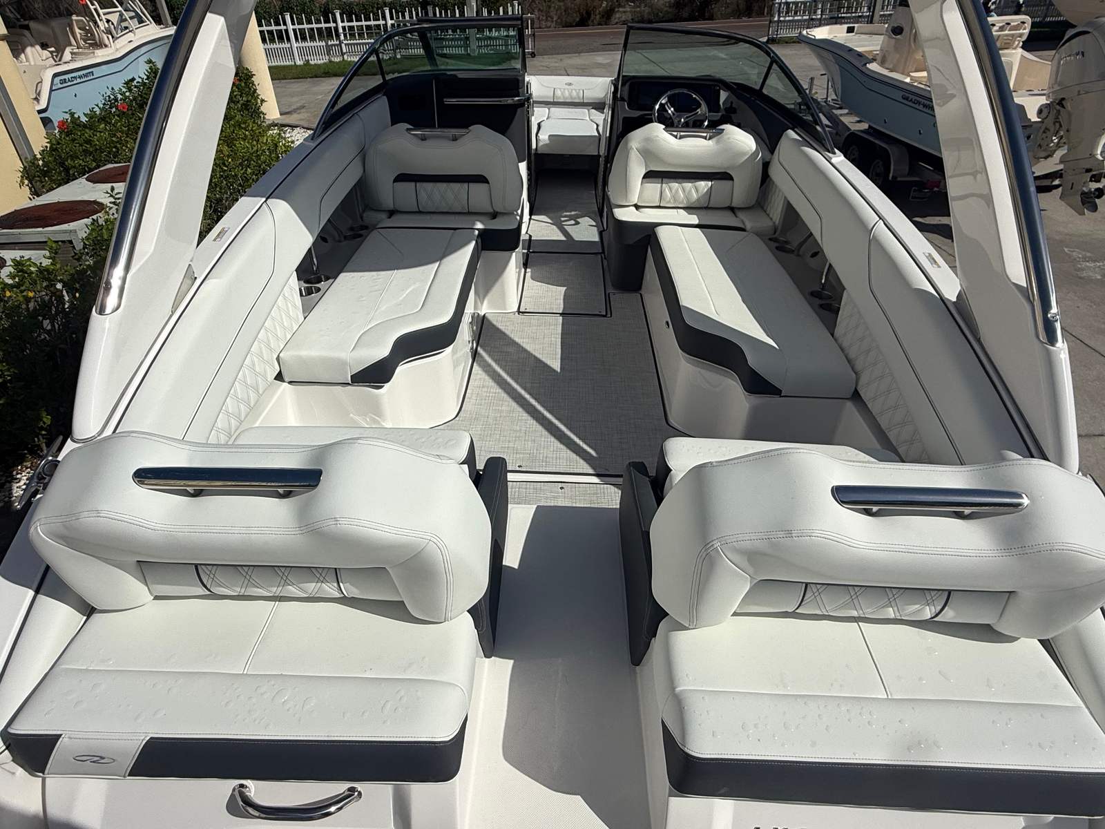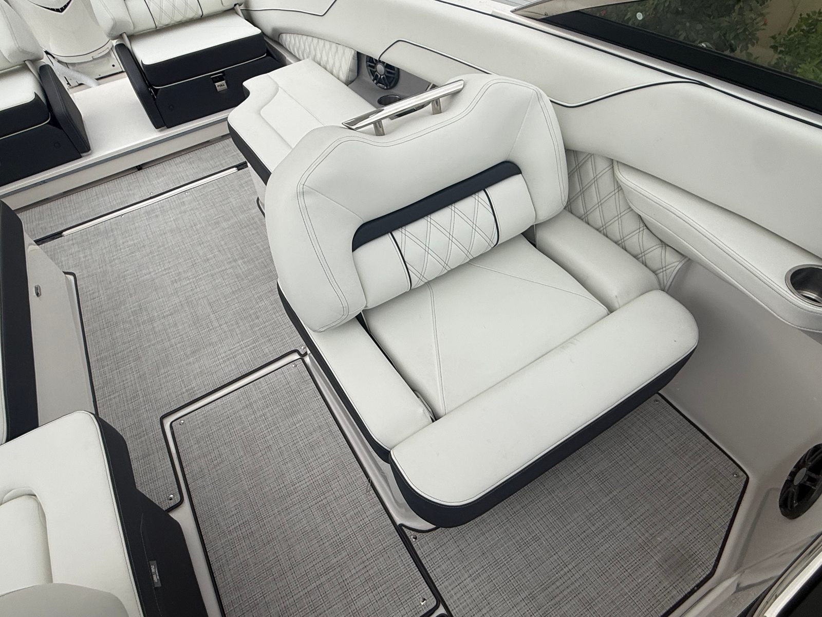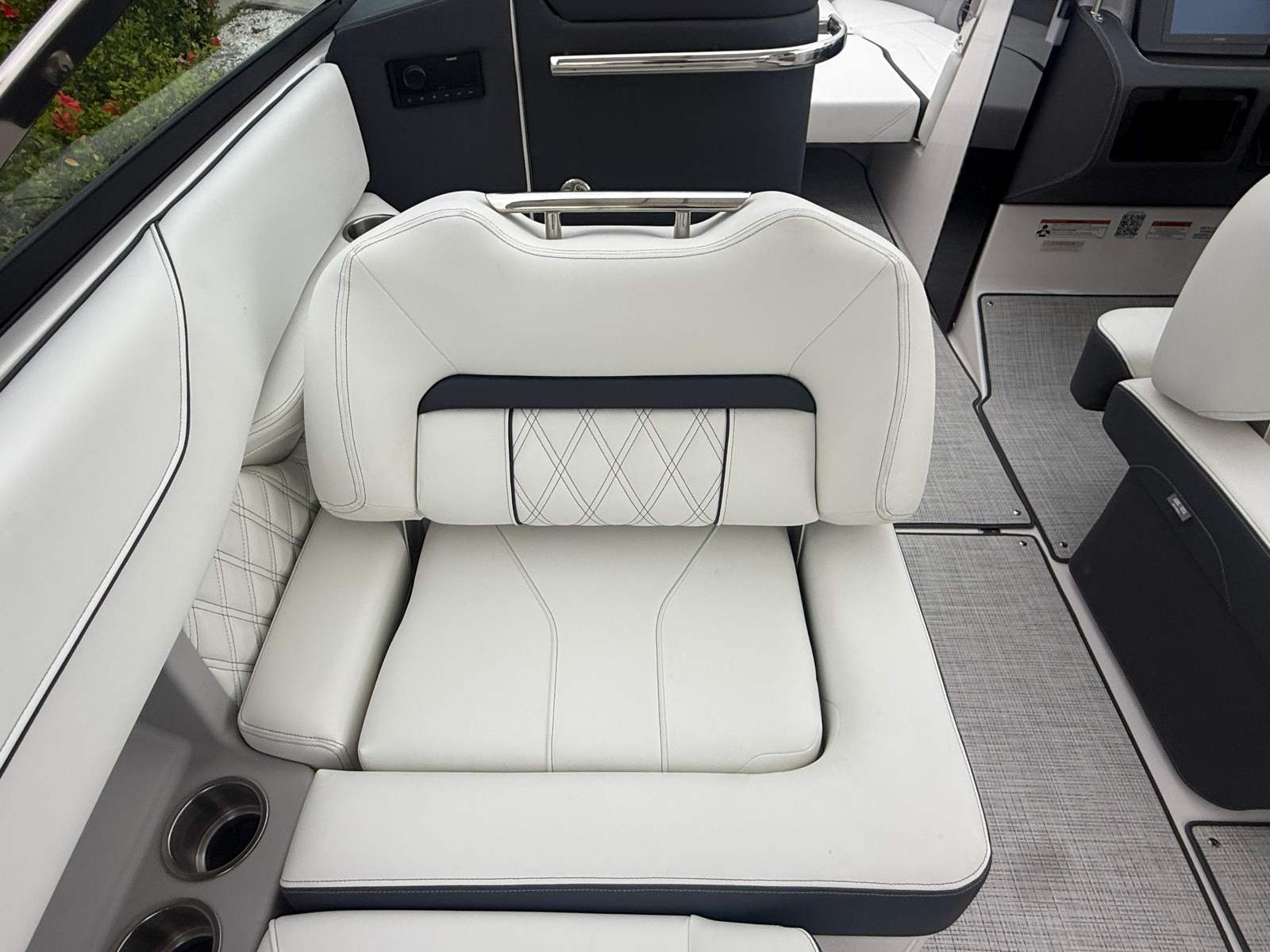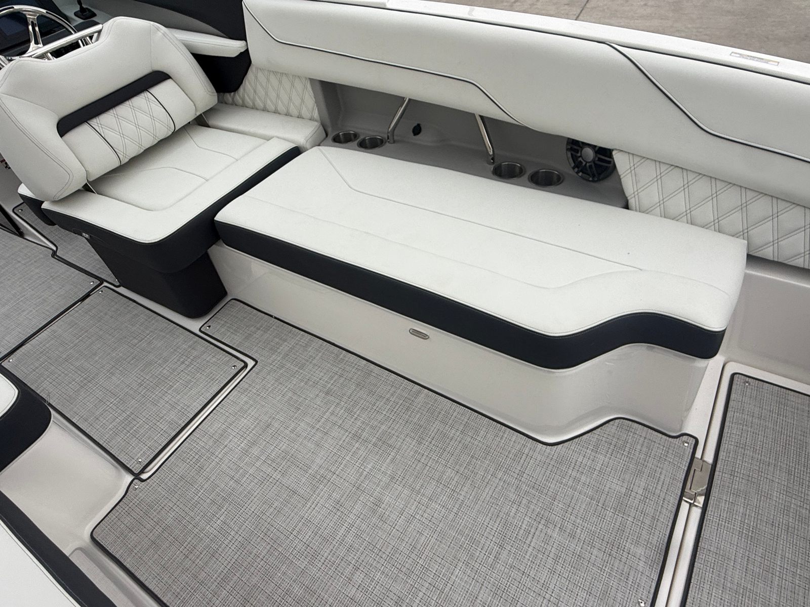 Beyond its impressive performance and luxurious features, the Regal LX6 is designed with practicality in mind. The dual battery system ensures that you have reliable power for extended outings, while the battery charger keeps everything running smoothly. The bow thruster simplifies docking and maneuvering in marinas, making it easy for boaters of all experience levels to handle the LX6 with confidence.The cockpit seagrass mat not only enhances comfort but also makes cleaning and maintenance a breeze. The bow and cockpit covers protect your investment from sun and weather, preserving the boat’s appearance and value. With the trim tabs, you can easily adjust the boat’s attitude for optimal fuel efficiency and ride comfort, ensuring that every trip is as enjoyable as possible.