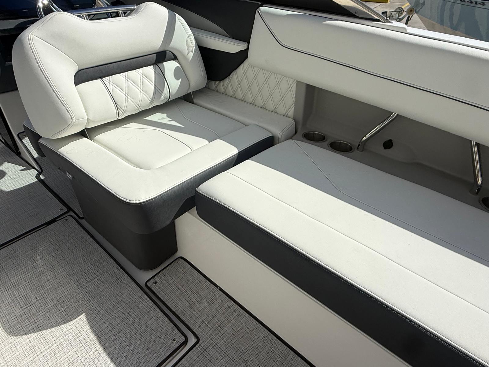 The Regal LX6 is loaded with premium features designed to enhance your boating experience. Bow and cockpit covers provide essential protection from the elements, keeping your boat looking pristine and ready for action. The manual bow and cockpit sunshade system, finished in a stylish steel gray canvas, offers customizable shade options, ensuring comfort during sunny days on the water. Step onto the cockpit seagrass mat and enjoy a soft, non-slip surface that adds a touch of elegance and practicality to the deck.For peace of mind and convenience, the LX6 includes a dual battery switch with tray and cables, as well as a battery charger, ensuring reliable power for all your onboard systems. The bow thruster makes maneuvering in tight spaces a breeze, while the transom shower and pressure water package provide refreshing convenience after a swim or water sports session. With these thoughtful features, the LX6 stands out as a top choice among bowrider boats for sale.