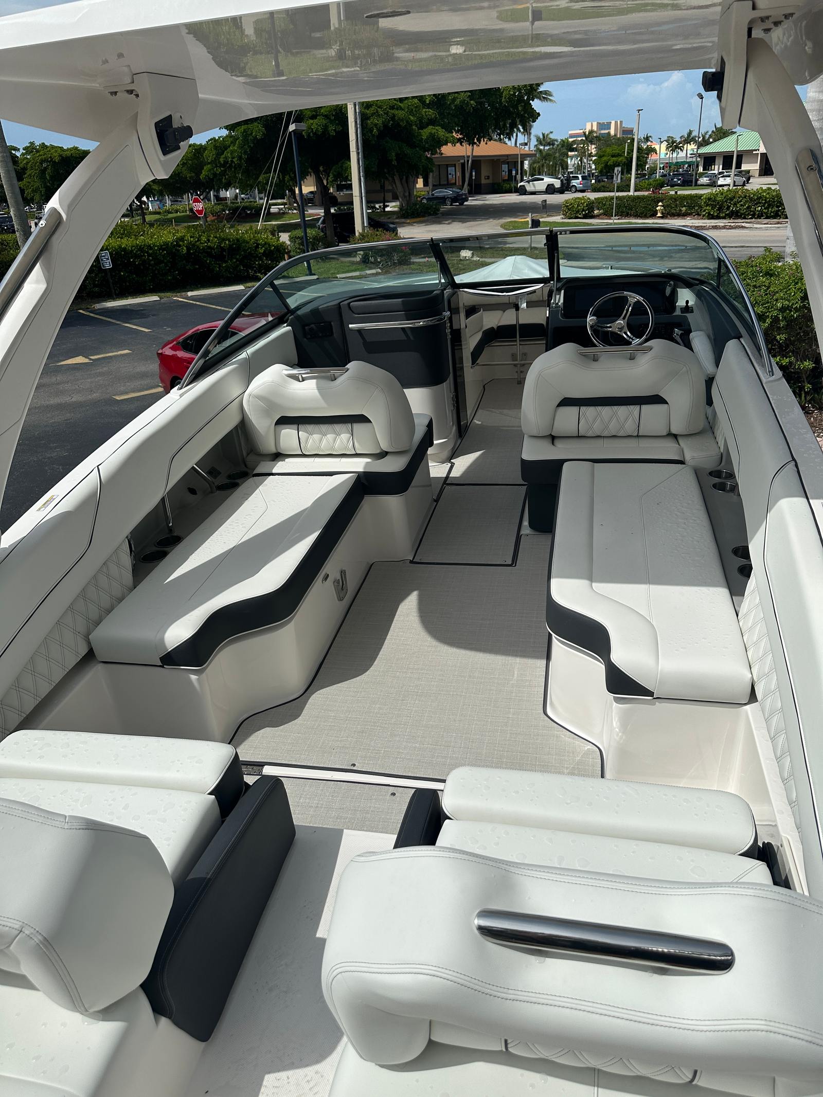 The Regal LX6 is as practical as it is stylish. Its 26.25-foot length provides ample storage for all your gear, from water toys to picnic supplies, ensuring you are always prepared for a day of fun. The bow thruster makes docking and maneuvering in tight spaces a breeze, reducing stress and making every outing more enjoyable. The dual battery switch with tray and cables offers reliable power management, so you can confidently use onboard electronics and accessories without worry.The protective bow and cockpit covers help shield your investment from the elements, preserving the boat’s appearance and extending its lifespan. The Steel Grey canvas is both durable and attractive, while the Seagrass mat in the cockpit is easy to clean and maintain. These practical features make the Regal LX6 an excellent choice for boaters who value convenience, reliability, and ease of ownership.