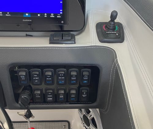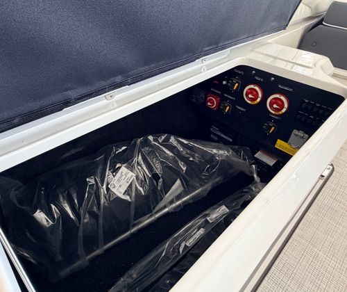 The 2026 Regal LX6 comes equipped with a range of special features designed to enhance your boating experience. The striking Tahiti Beach White hull and bottom, paired with a black bootstripe, create a visually stunning exterior that is sure to turn heads. The Titanium interior offers a modern, upscale feel, providing both comfort and durability for all your adventures.For added convenience and protection, the LX6 includes bow and cockpit covers, ensuring your boat stays clean and protected from the elements when not in use. The manual bow and cockpit sunshade system, finished in black canvas, allows you to create shaded areas for relaxation, making hot summer days more enjoyable. The cockpit seagrass mat adds a touch of luxury underfoot, while also being easy to clean and maintain.Practical features such as the dual battery switch with tray and cables, along with a battery charger, ensure reliable power management and peace of mind during every outing. These thoughtful additions make the LX6 not only stylish but also highly functional for boaters who value convenience and reliability.