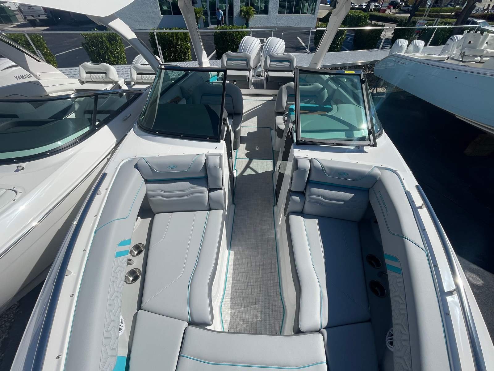The Regal LX9 Ultimate Bowrider shines in a variety of scenarios, making it a versatile choice for any boating enthusiast. Picture family outings where everyone has room to relax, swim, and play. Imagine hosting sunset cruises with friends, enjoying the vibrant interior and spacious seating. For those who love water sports, the powerful engines deliver the speed and agility needed for tubing, wakeboarding, or skiing.This Bowrider is also perfect for luxury getaways, offering the amenities and comfort needed for extended trips. The overboard discharge toilet and ample seating make it easy to spend the whole day—or even a weekend—on the water. Whether you’re exploring new coves, anchoring for a picnic, or simply enjoying the open water, the LX9 Ultimate adapts to your every need.