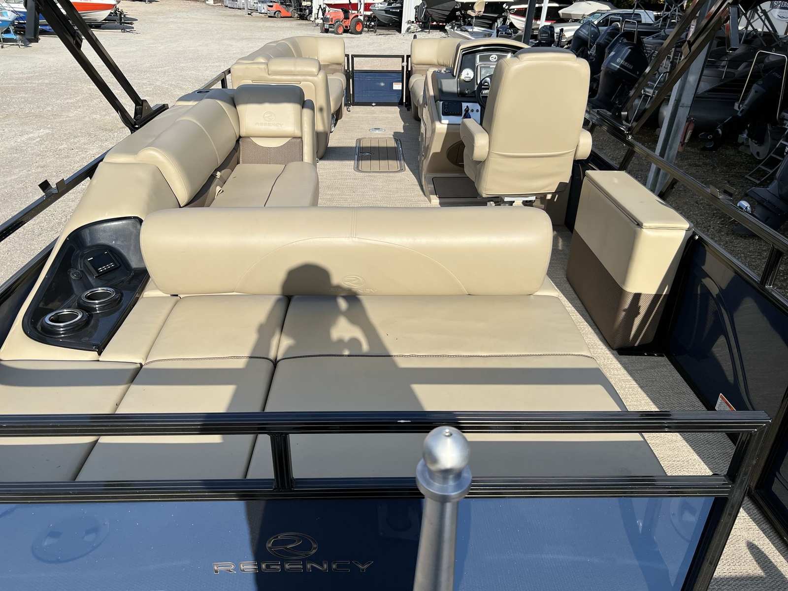 The 2023 Regency 250DL3 Sport Regency pontoon boat is a standout choice for anyone seeking a blend of luxury, performance, and versatility. With its spacious 25-foot design, powerful 350-horsepower engine, and thoughtful features, this used Regency boat for sale offers an unbeatable combination of comfort and excitement. Whether you are looking to entertain, relax, or explore, this pontoon boat is ready to deliver unforgettable experiences on the water.If you are in the market for a pontoon boat for sale that offers style, performance, and lasting value, the Regency 250DL3 Sport Regency deserves your attention. Do not miss the chance to make this exceptional vessel your own—contact the dealer today to learn more and start your next adventure on the water.