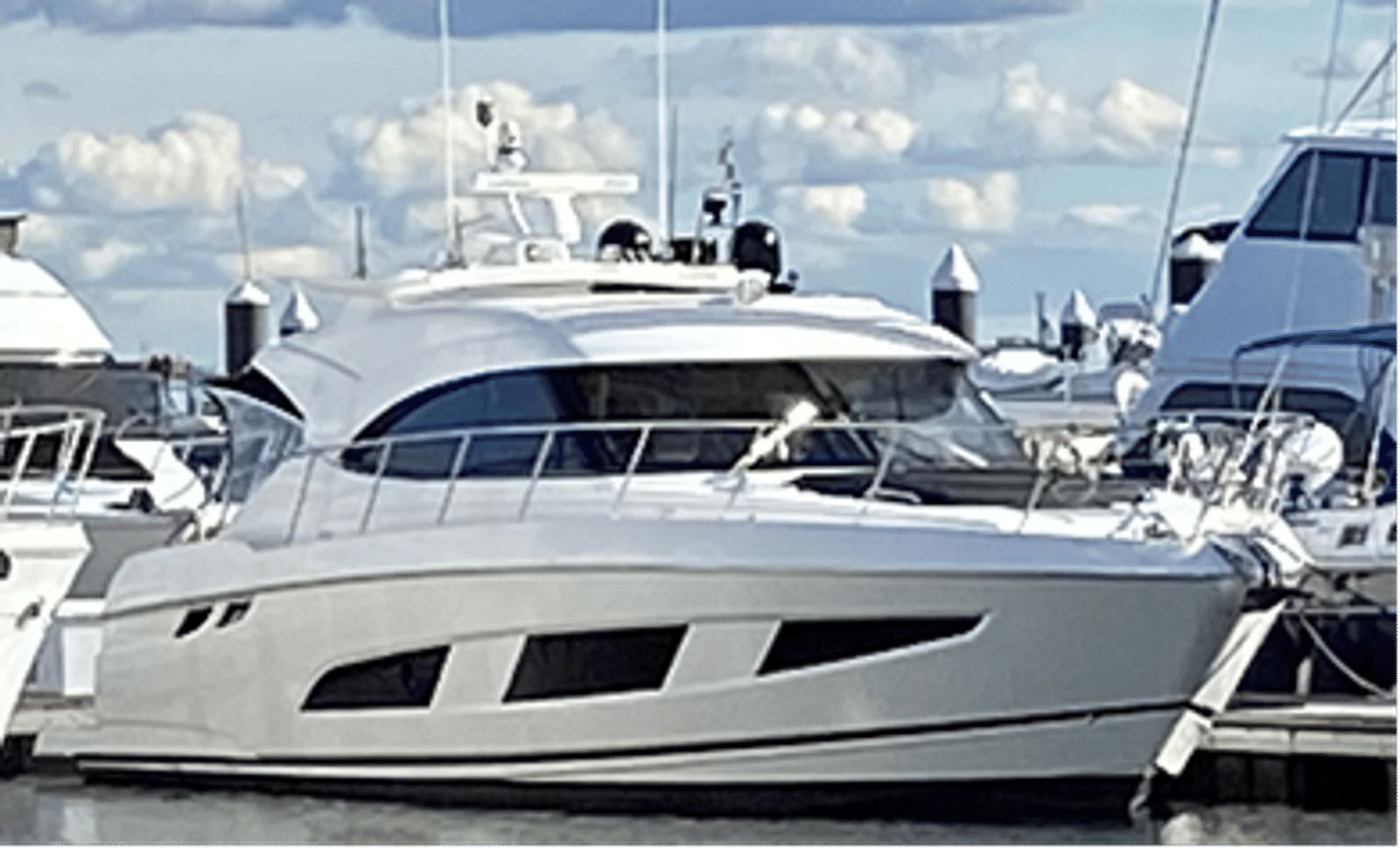Powered By Twin Volvo IPS 800 D8’s (600 HP ea.) w/ Only 340 Hours! * Inc. ACP, Helm Joystick * White Hull Color * Garmin GMR 424 XHD Open Array Radar 5” * Navigation Screens (16”) Upgrade * Portside & Starboard Side Cockpit Joysticks * FLIR Night Vision Camera * Cameras: Engine, Awning, Anchor * Muir Windlass * Tender Garage w/Mercury RIB Tender & Yamaha 8 HP * Additional Transom Fixed Cleats * Extended Swim Platform * Underwater Lights * Fuel Filters/ Water Separator (DUAL) * Fresh Water Backup Pump * Upgraded Upholstery * Anchor Upgrade (S.S. Ultra) * Forward Deck Sunpad * Foredeck Lighting * Helm Electric Sunroof * Cockpit Awning * Cockpit Wet Bar w/ Grill, Ice Maker * Teak Laid Cockpit Floor * Galley w/ Dishwasher * U-Shaped Dinette * Galleyware Package * Walnut Gloss Interior Finish * Splendid Washer/Dryer Combo * Master TV, Aft Stateroom 24” LED TV * Master: King Walk-Around Innerspring Berth * Ensuite w/ Separate Shower Stall * Second Stateroom: Convertible Twins, Another Single * Second Bathroom/ Day Head * Professionally Maintained * OFF-SITE, BY APPOINTMENT * @DN