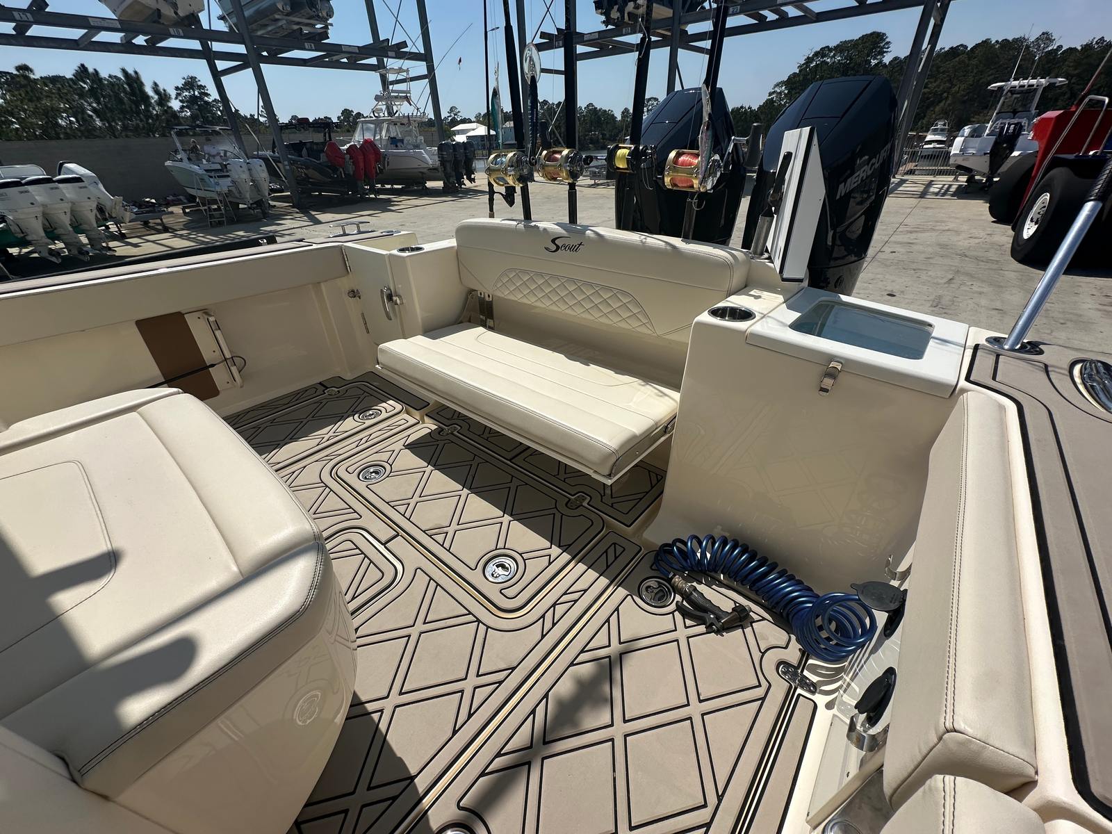 The Scout 330 LXF is designed with practicality in mind, making boat ownership easier and more enjoyable. The generous storage options allow you to bring along all the gear you need for a day on the water, from fishing equipment to water toys and picnic supplies. The center console layout provides easy access to all areas of the boat, simplifying docking and maneuvering in tight spaces.Fuel efficiency is a key consideration for any boater, and the twin-engine setup of the Scout 330 LXF is engineered to deliver impressive performance without sacrificing economy. This means you can spend more time on the water and less time at the fuel dock. The durable construction and quality materials ensure that this used Scout boat for sale will stand up to the demands of regular use, providing peace of mind for years to come.