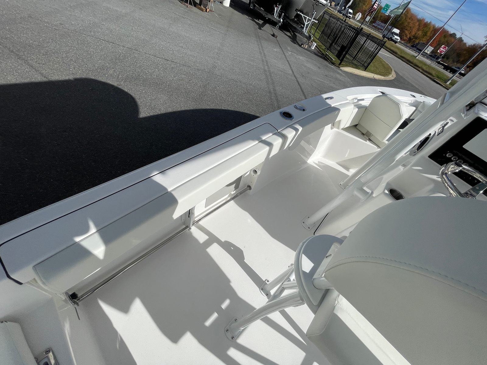 The 2026 Sea Pro 225 Flxr Center Console is a testament to Sea Pro’s commitment to quality and innovation. Measuring an impressive 21.75 feet in length, this new center console boat offers ample space for both relaxation and activity. The eye-catching Sea Creature blue hull side color, paired with a white hull bottom and matching white powder coat, gives the 225 Flxr a modern, sophisticated look that stands out at any marina or on open water. The white upholstery, complete with a bolster package, ensures both comfort and style, while the bow table with cushion adds a touch of luxury for social gatherings or family picnics on board.