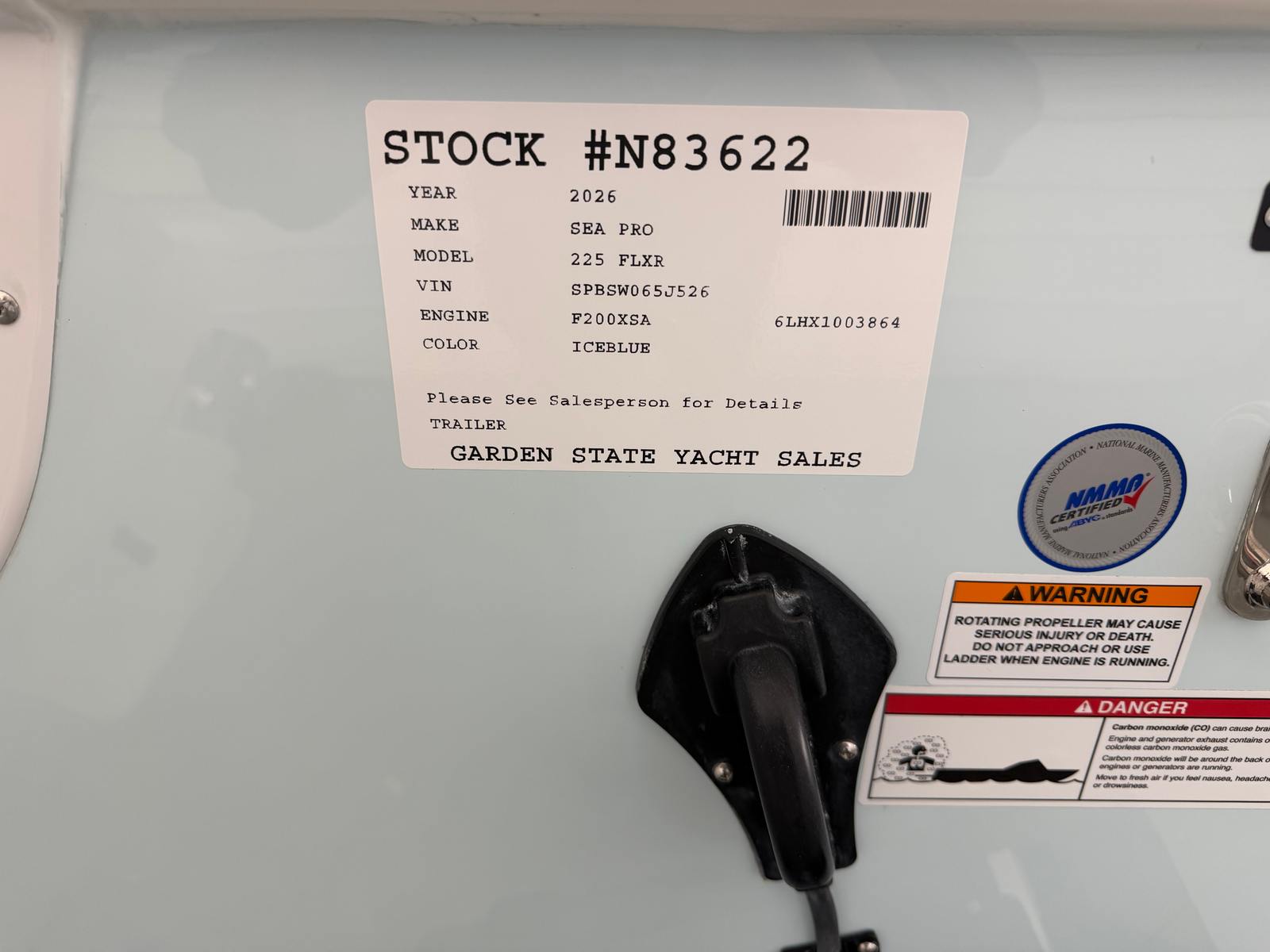 In summary, the 2026 Sea Pro 225 Flxr is a remarkable Center Console boat for sale that combines cutting-edge features, powerful performance, and timeless style. With its 200-horsepower engine, advanced Yamaha Digital rigging, and a host of thoughtful amenities—including a pump-out head, fish box macerator, stainless steel cup/rod holders, battery charging system, wireless phone charger, and light bar for the hard top—this Sea Pro boat for sale is ready to elevate your boating experience.Whether you are seeking adventure, relaxation, or the perfect platform for fishing and entertaining, the Sea Pro 225 Flxr delivers on every level. Don’t miss the opportunity to own this exceptional Center Console boat. Contact your local dealer today to learn more and take the first step toward unforgettable days on the water.