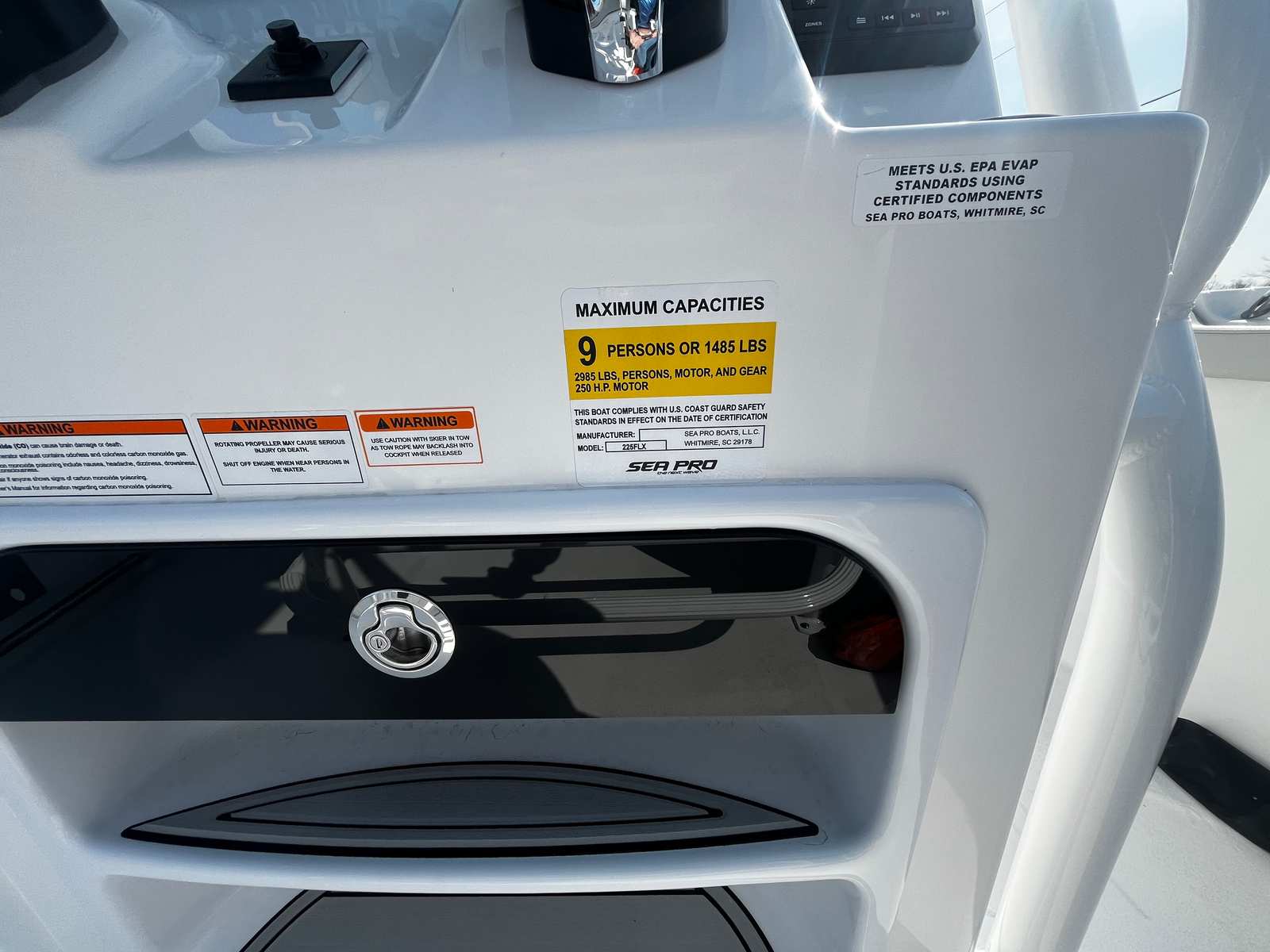 The Sea Pro 225 Flxr is as practical as it is stylish. Its manageable 21.75-foot length makes docking and trailering straightforward, even for those new to Center Console ownership. The efficient Yamaha engine is designed to maximize fuel economy, reducing the frequency of refueling stops and lowering operating costs. The boat’s layout offers ample storage for gear, tackle, and personal items, keeping the deck uncluttered and organized.The hard top not only provides shelter but also serves as a mounting point for additional accessories, such as rod holders or electronics, enhancing the boat’s versatility for fishing or cruising. The durable upholstery and easy-to-clean surfaces make maintenance simple, so you can spend more time enjoying your boat and less time on upkeep.
